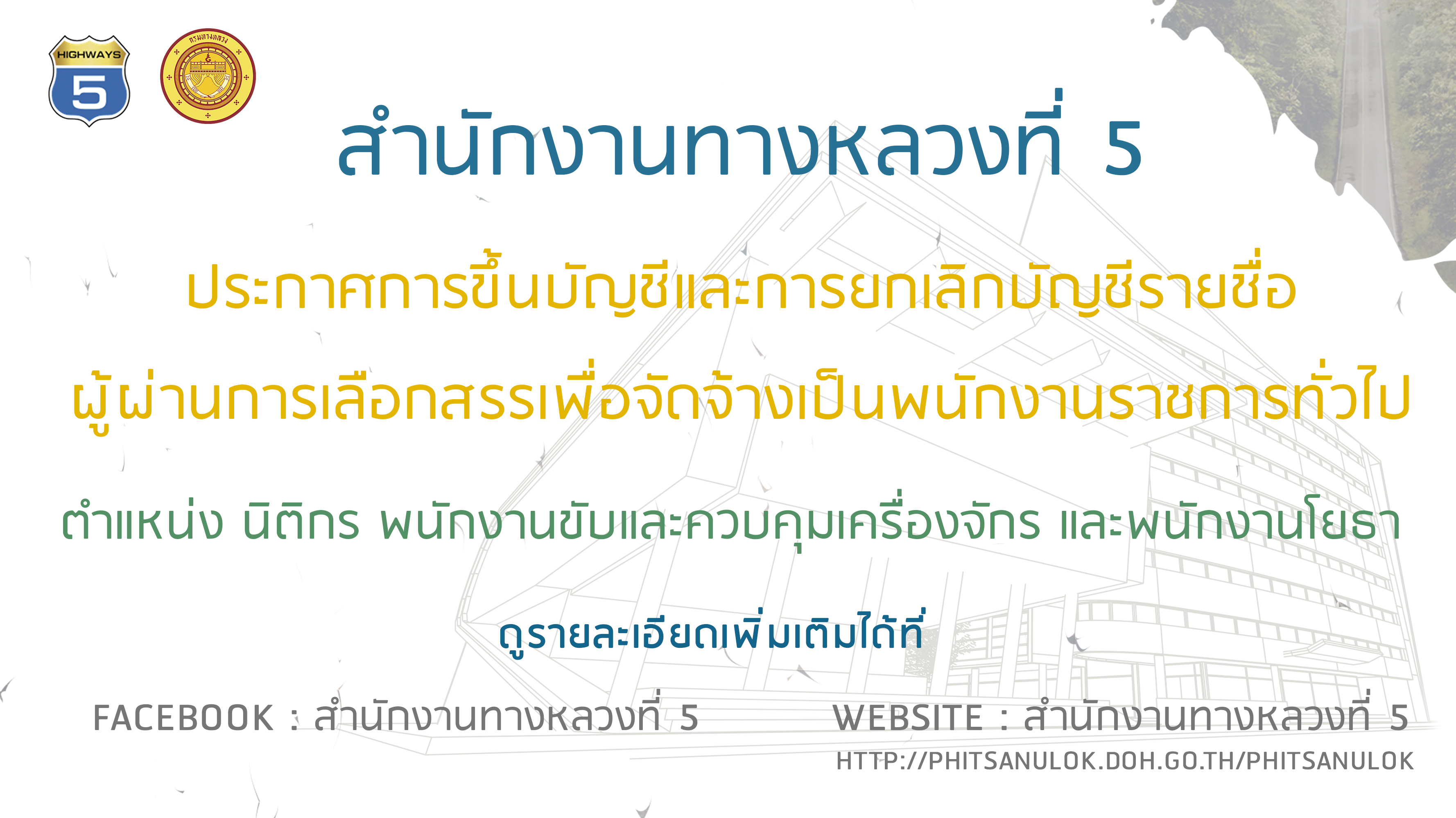 ประกาศการขึ้นบัญชีและการยกเลิกบัญชีรายชื่อผู้ผ่านการเลือกสรรเพื่อจัดจ้่างเป็นพนักงานราชการ ตำแหน่ง นิติกร พนักงานขับและควบคุมเครื่องจักร และพนักงานโยธา