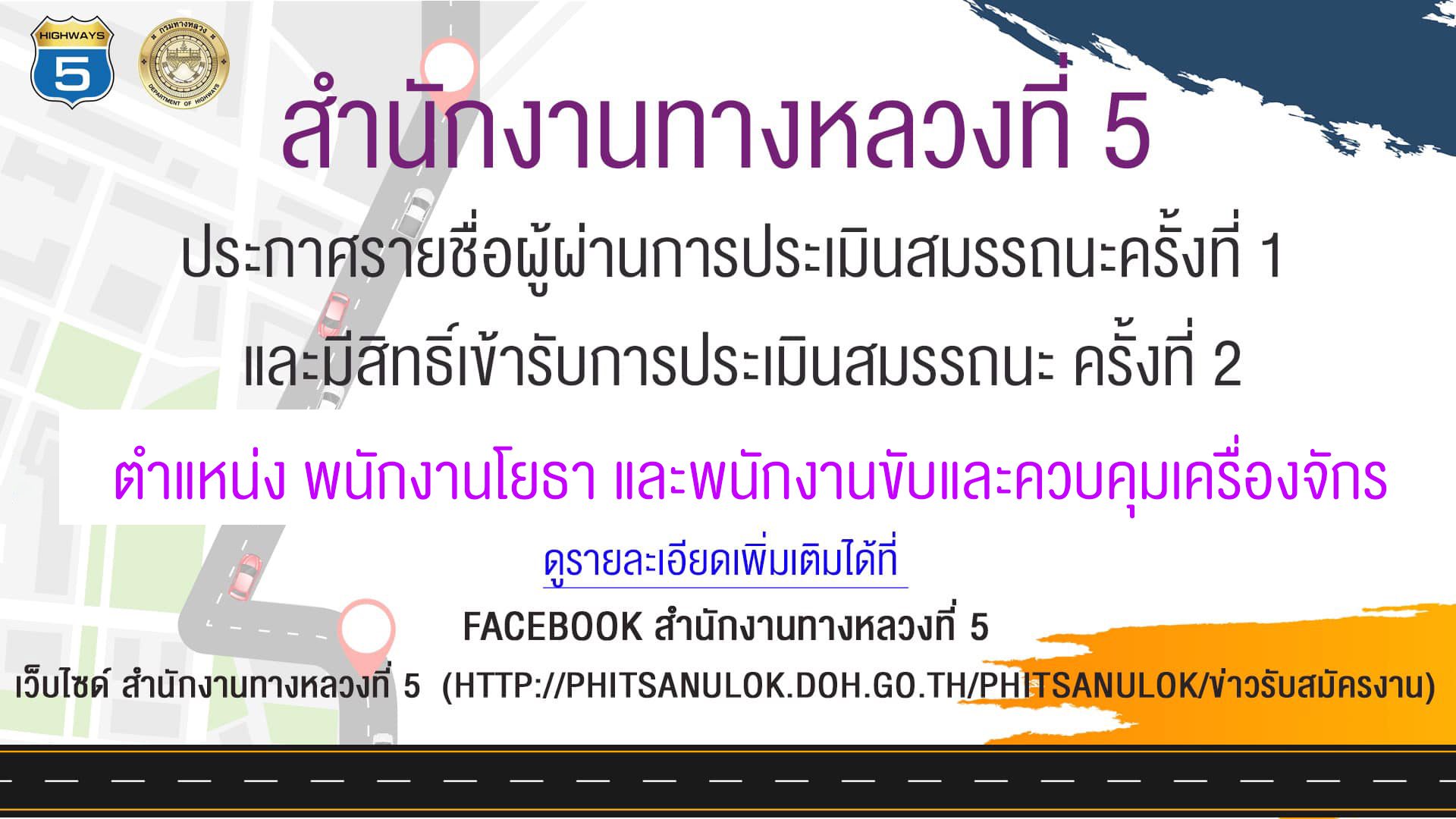 ประกาศรายชื่อผู้ผ่านการประเมินสมรรถนะครั้งที่ 1 และมีสิทธิ์เข้ารับการประเมินสมรรถนะ ครั้งที่ 2