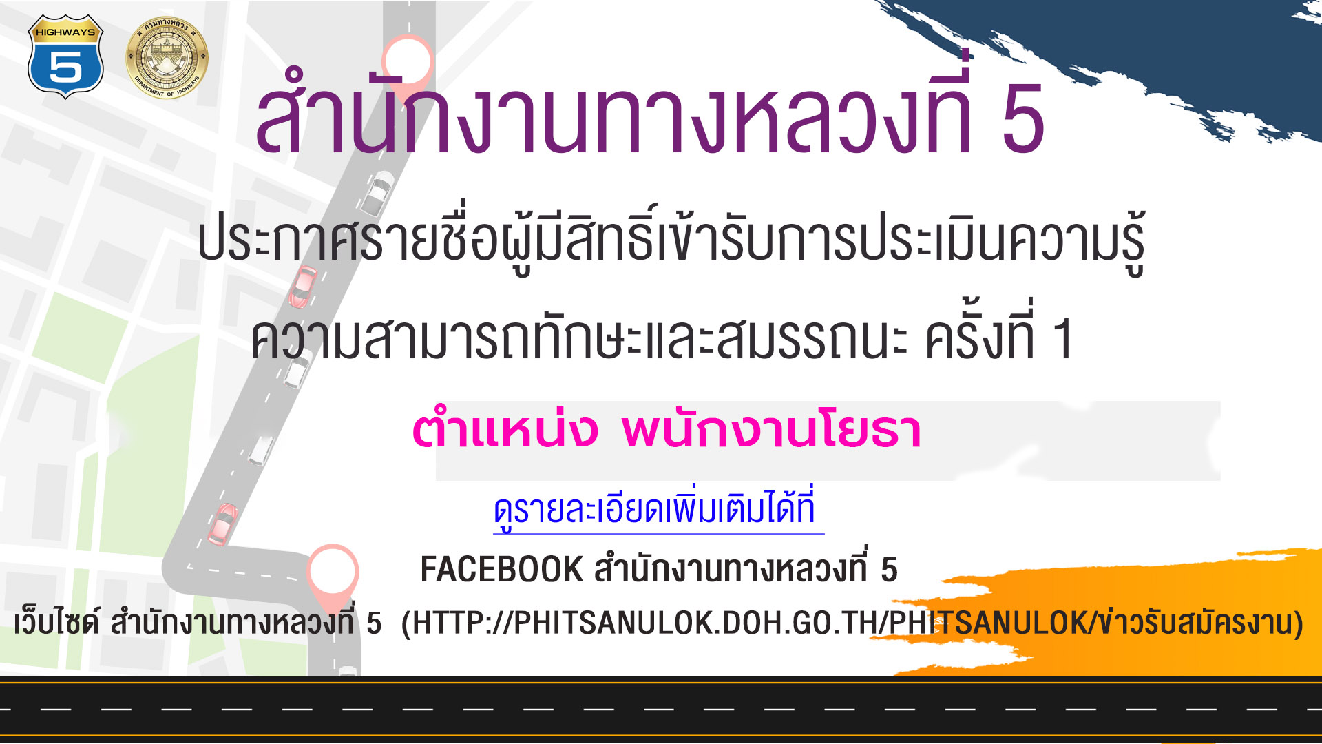 ประกาศรายชื่อผู้มีสิทธิ์เข้ารับการประเมินความรู้ความสามารถทักษะและสมรรถนะ ครั้งที่ 1 ตำแหน่ง พนักงานโยธา