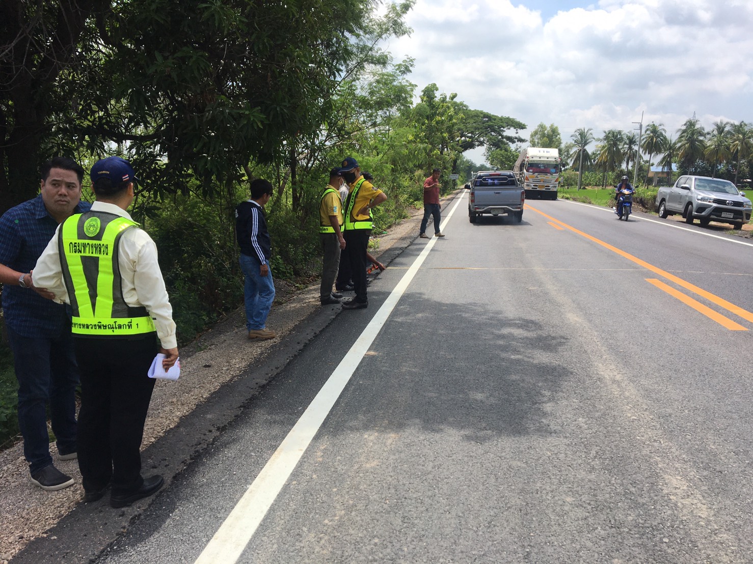 เข้าตรวจรับงาน งานบูรณะทางผิวแอสฟัลต์ ทางหลวงหมายเลข 1114 ตอน สันติบันเทิง - บางกระทุม ตอน 2 ระหว่าง กม.15+190 – กม.17+012