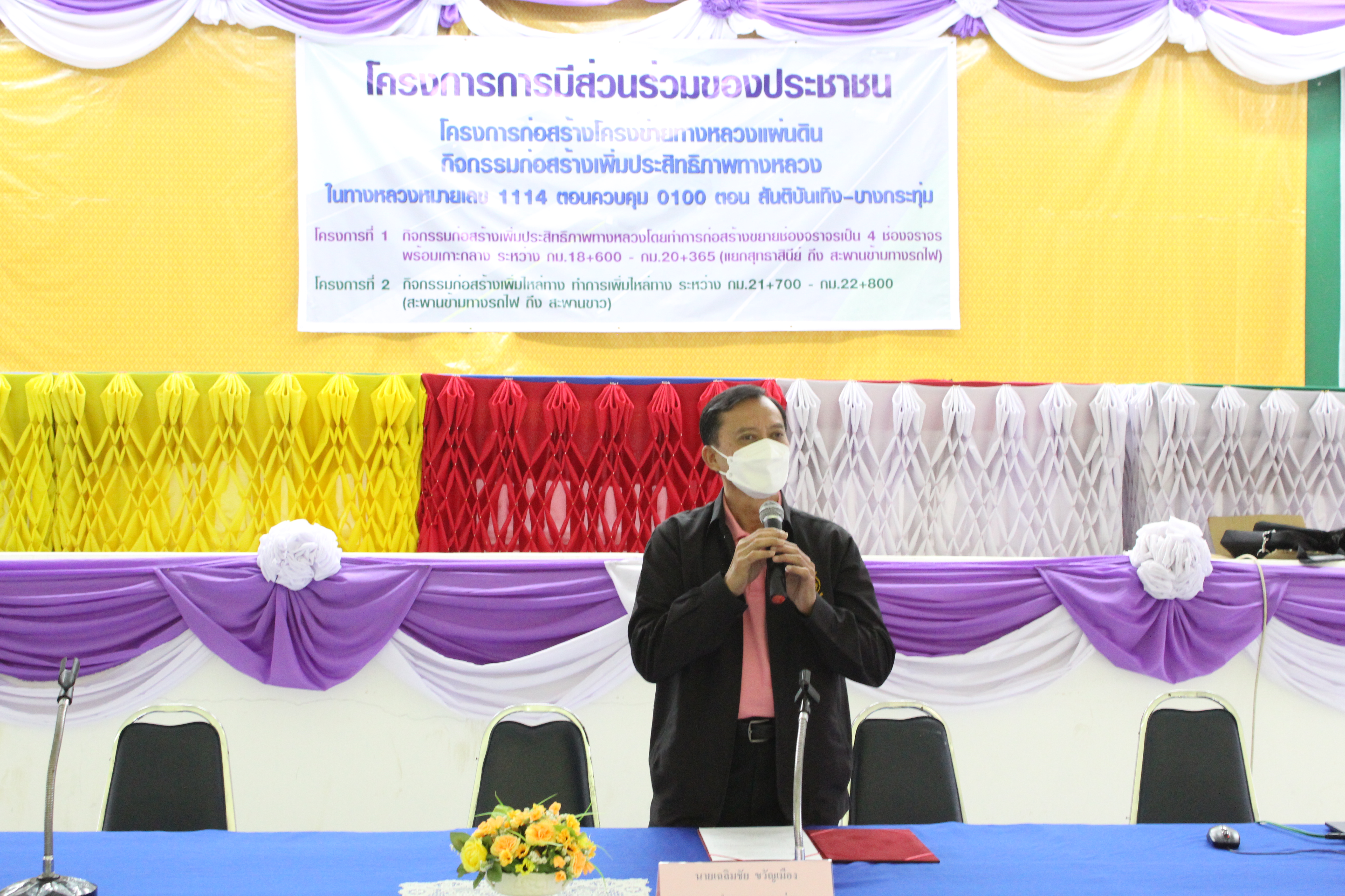 ประชุมการมีส่วนร่วมของประชาชน โครงการก่อสร้างโครงข่ายทางหลวงแผ่นดิน ในทางหลวงหมายเลข 1114 ตอนควบคุม 0100 ตอน สันติบันเทิง – บางกระทุ่ม จำนวน 2 โครงการ ดังนี้