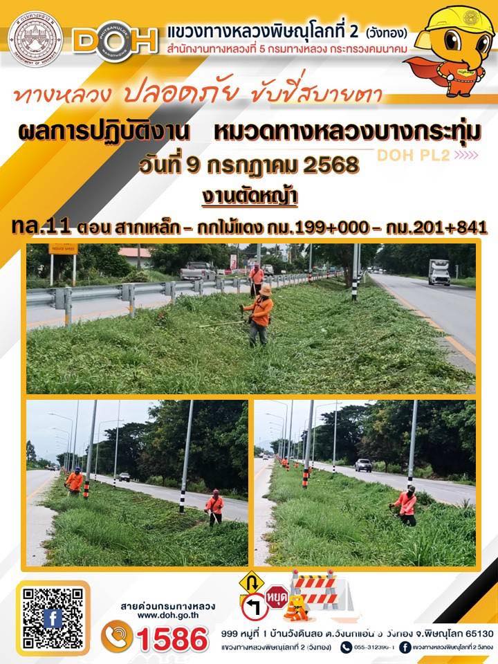 ผอ.แขวงทางหลวงพิษณุโลกที่ 2(วังทอง) นำทีม จนท.ดูการสาธิตทำแปลงทดลอง Green Control mat (ECM)