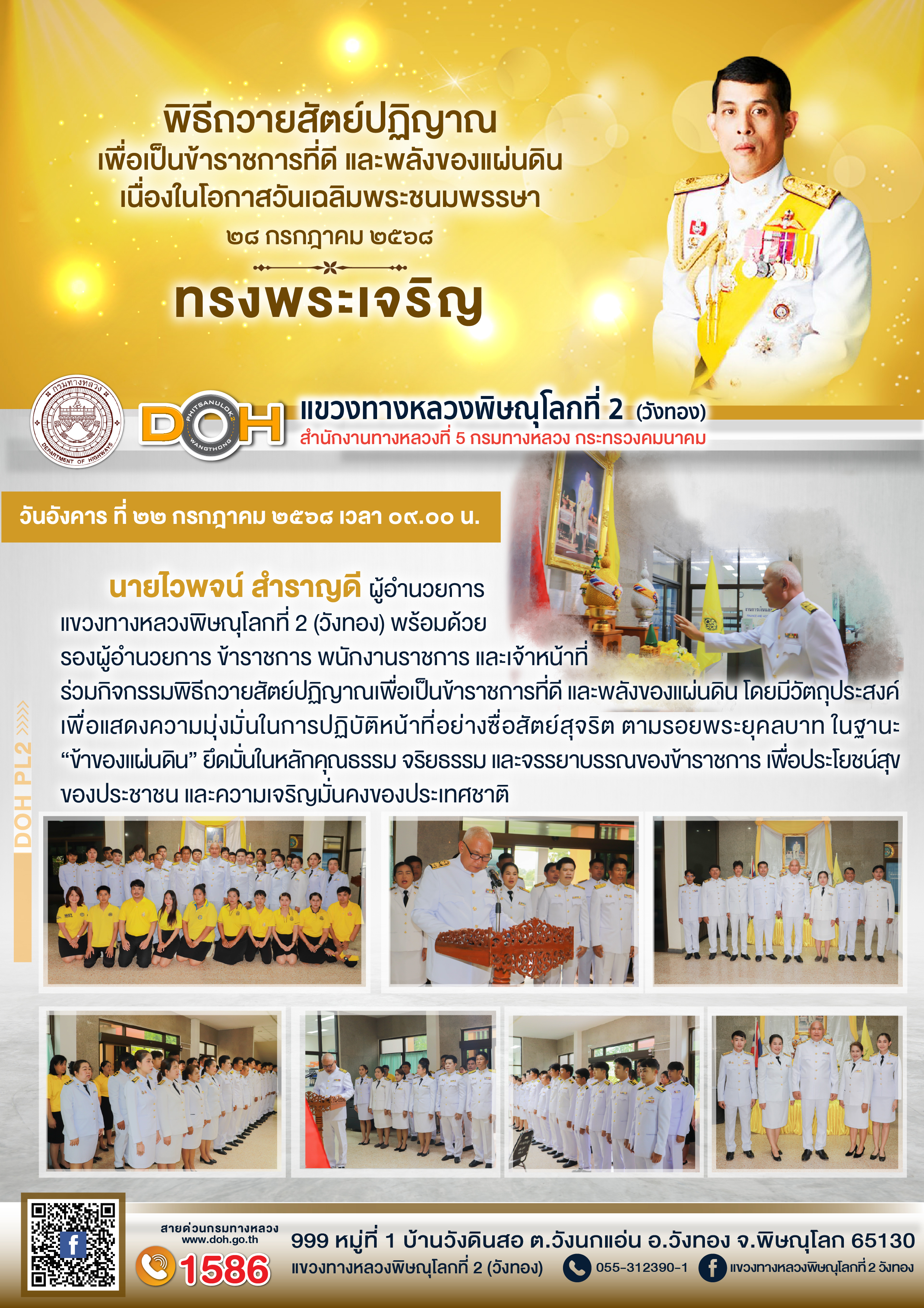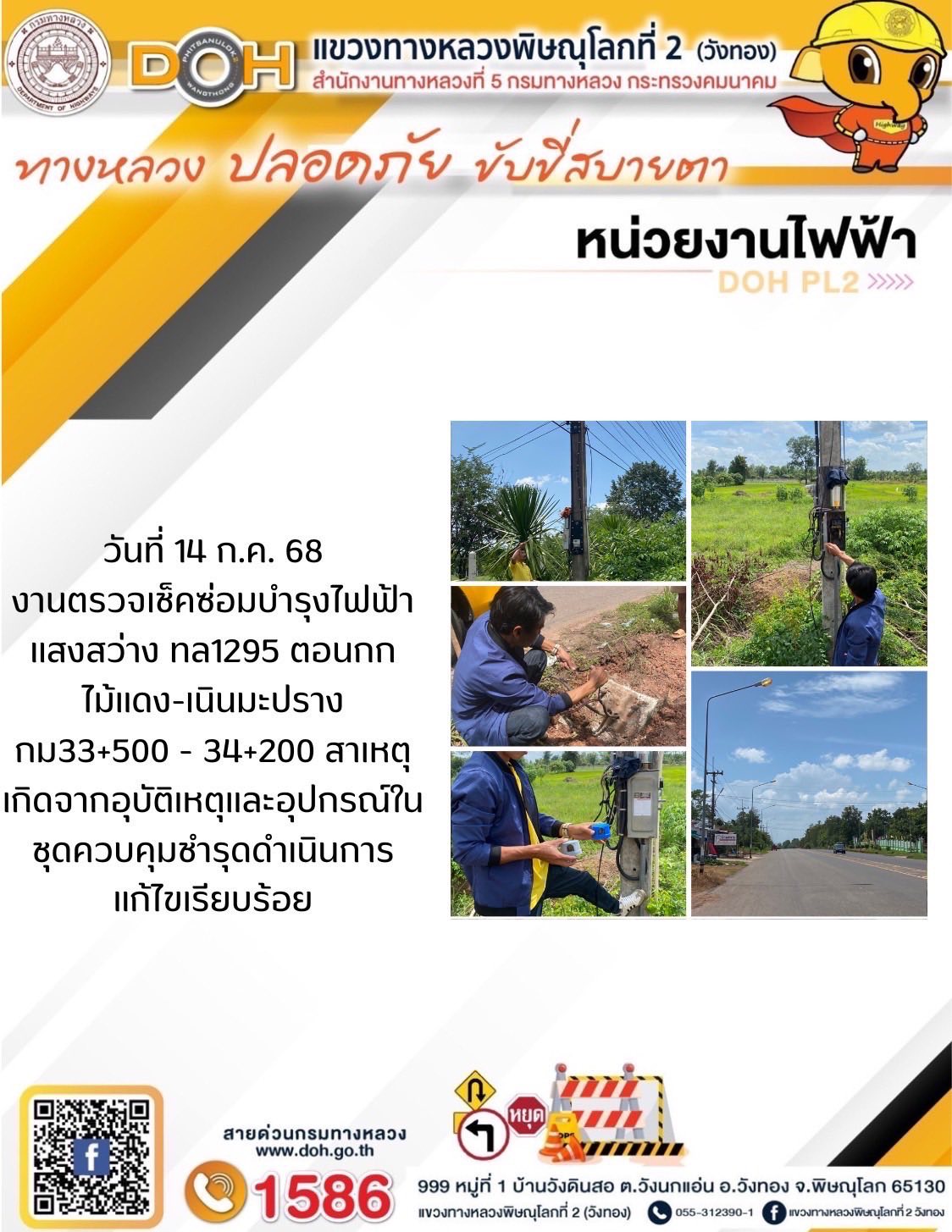 ตรวจเยี่ยม ศูนย์อำนวยความสะดวก และปลอดภัย แขวงทางหลวงพิษณุโลกที่ 2(วังทอง) บริเวณสี่แยกอินโดจีน