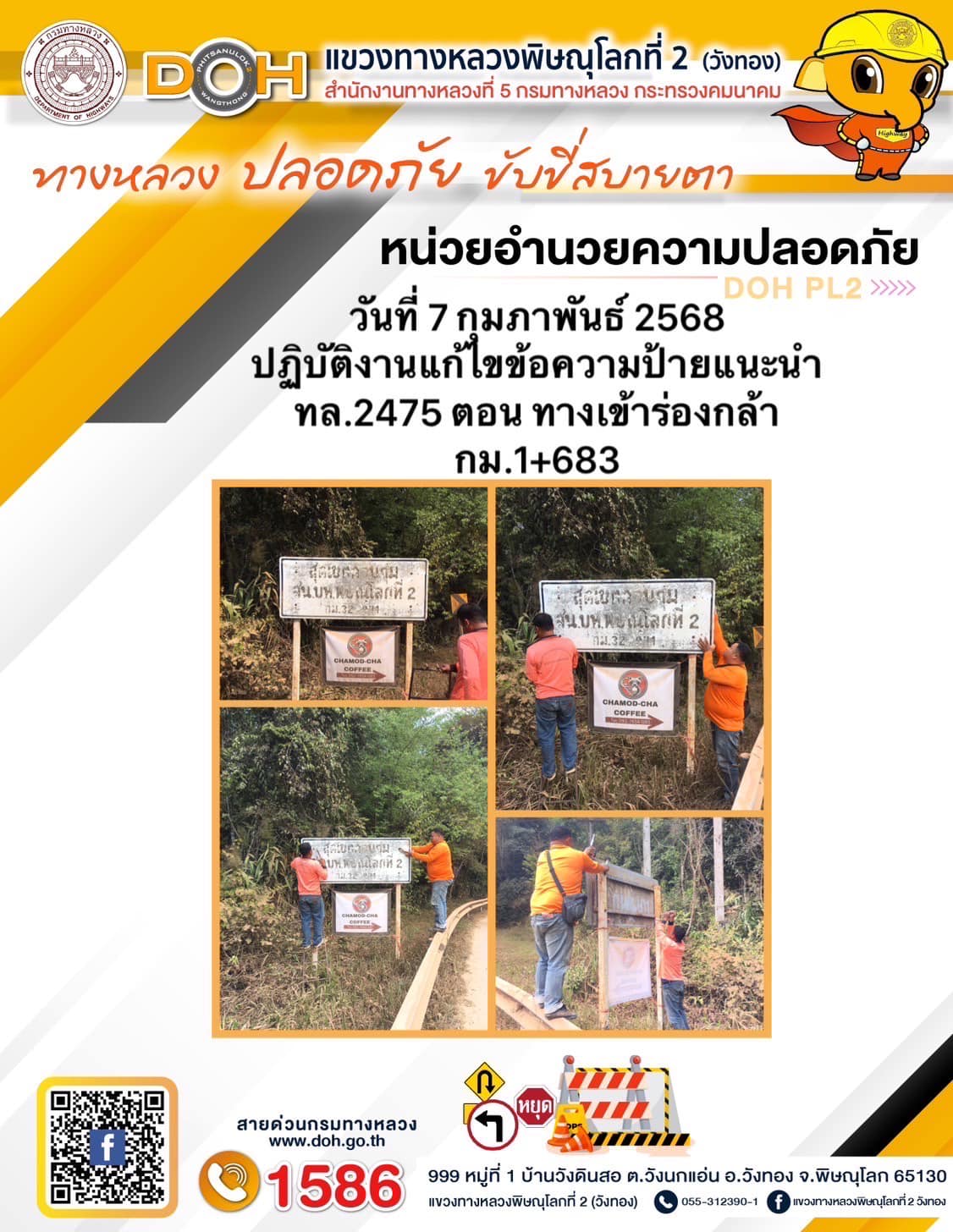 ตรวจเยี่ยม ศูนย์อำนวยความสะดวก และปลอดภัย แขวงทางหลวงพิษณุโลกที่ 2(วังทอง) บริเวณสี่แยกอินโดจีน