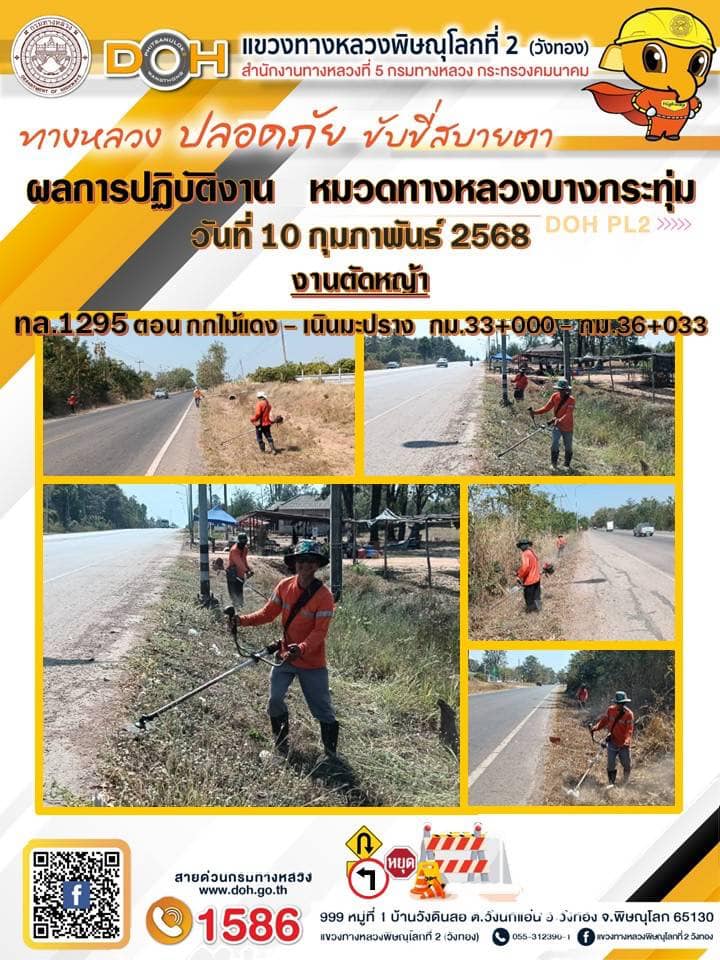 ผอ.แขวงทางหลวงพิษณุโลกที่ 2(วังทอง) นำทีม จนท.ดูการสาธิตทำแปลงทดลอง Green Control mat (ECM)