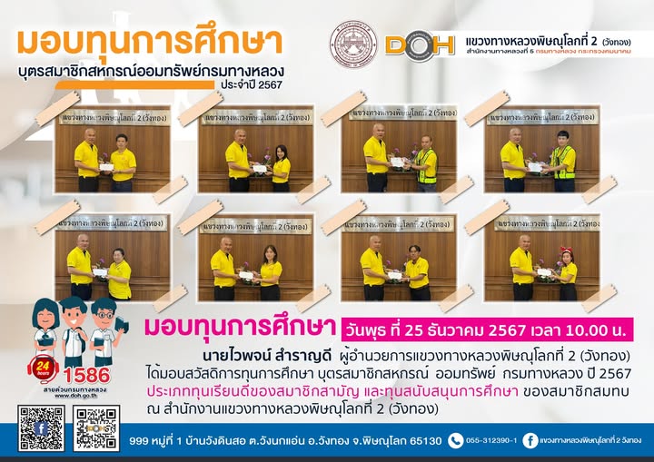มอบสวัสดิการทุนการศึกษา บุตรสมาชิกสหกรณ์ ออมทรัพย์ กรมทางหลวง ปี 2567