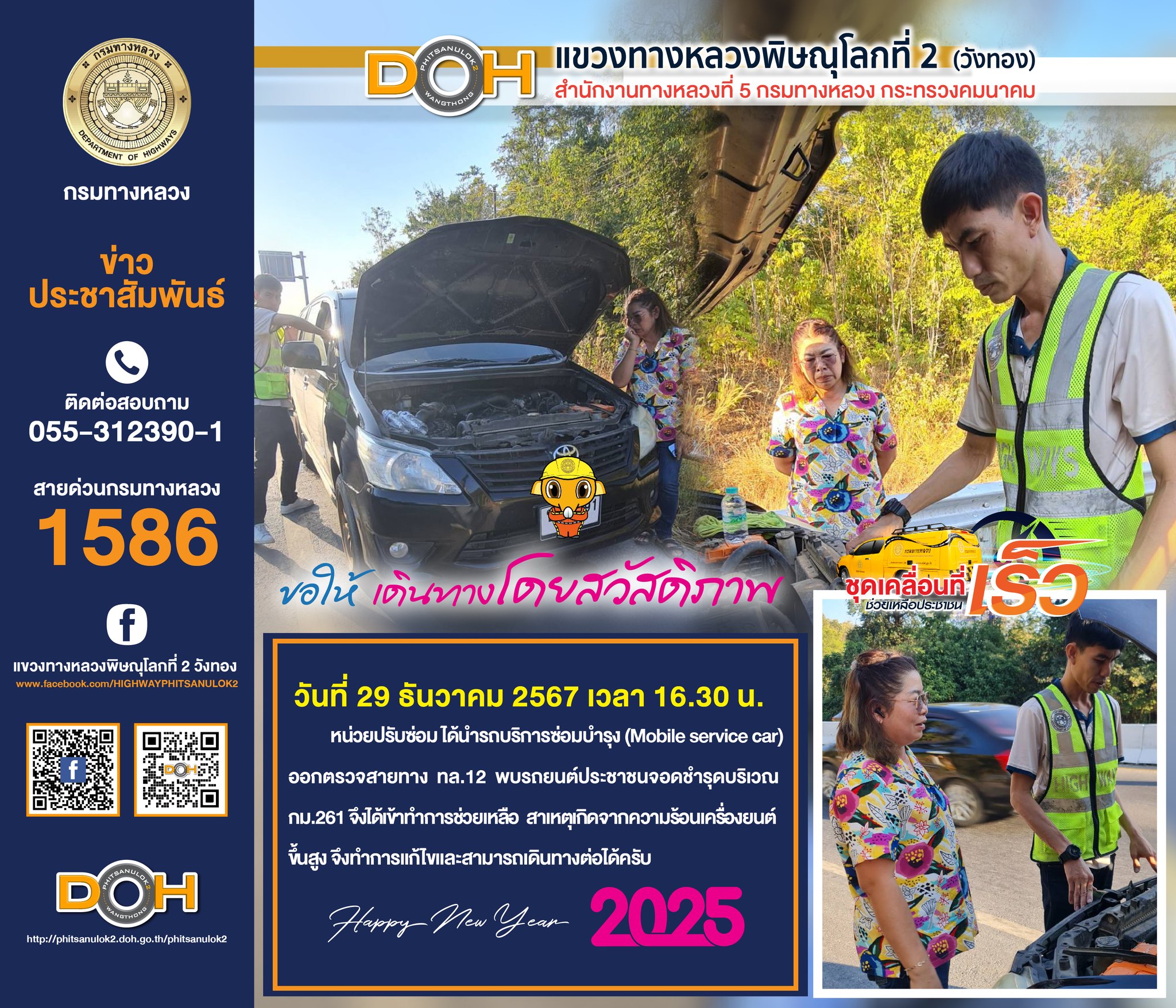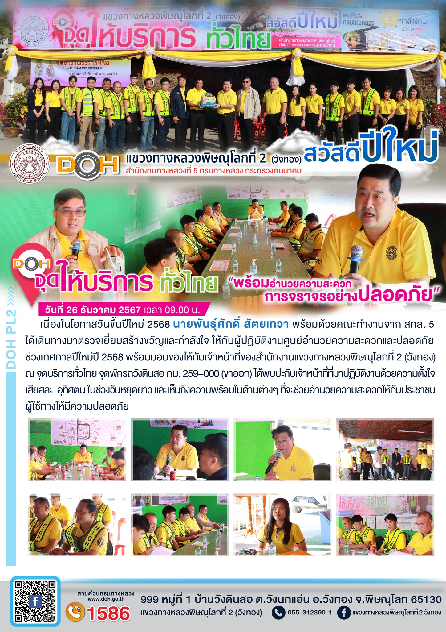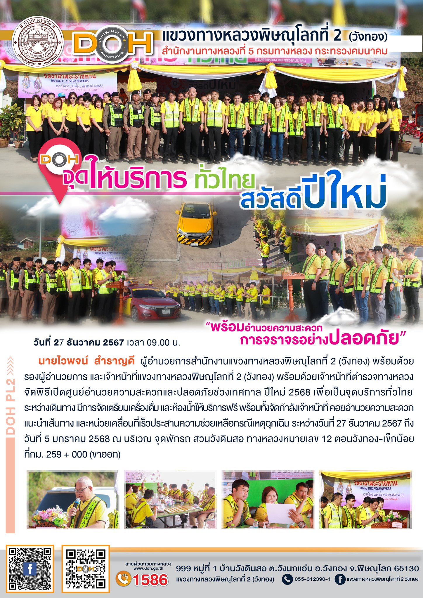 แขวงทางหลวงพิษณุโลกที่ 2 เปิดศูนย์อำนวยความสะดวกและปลอดภัยช่วงปีใหม่