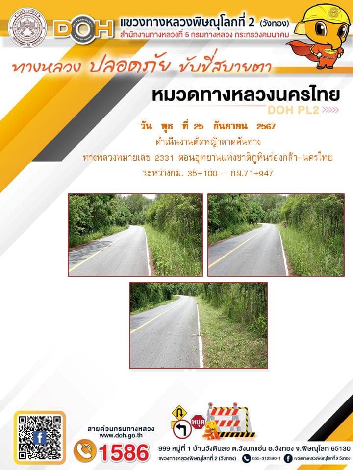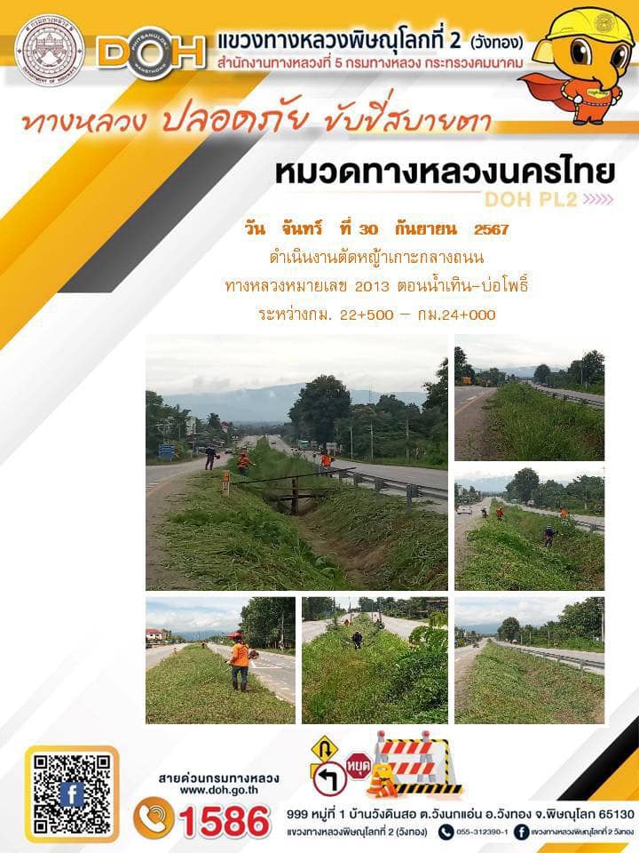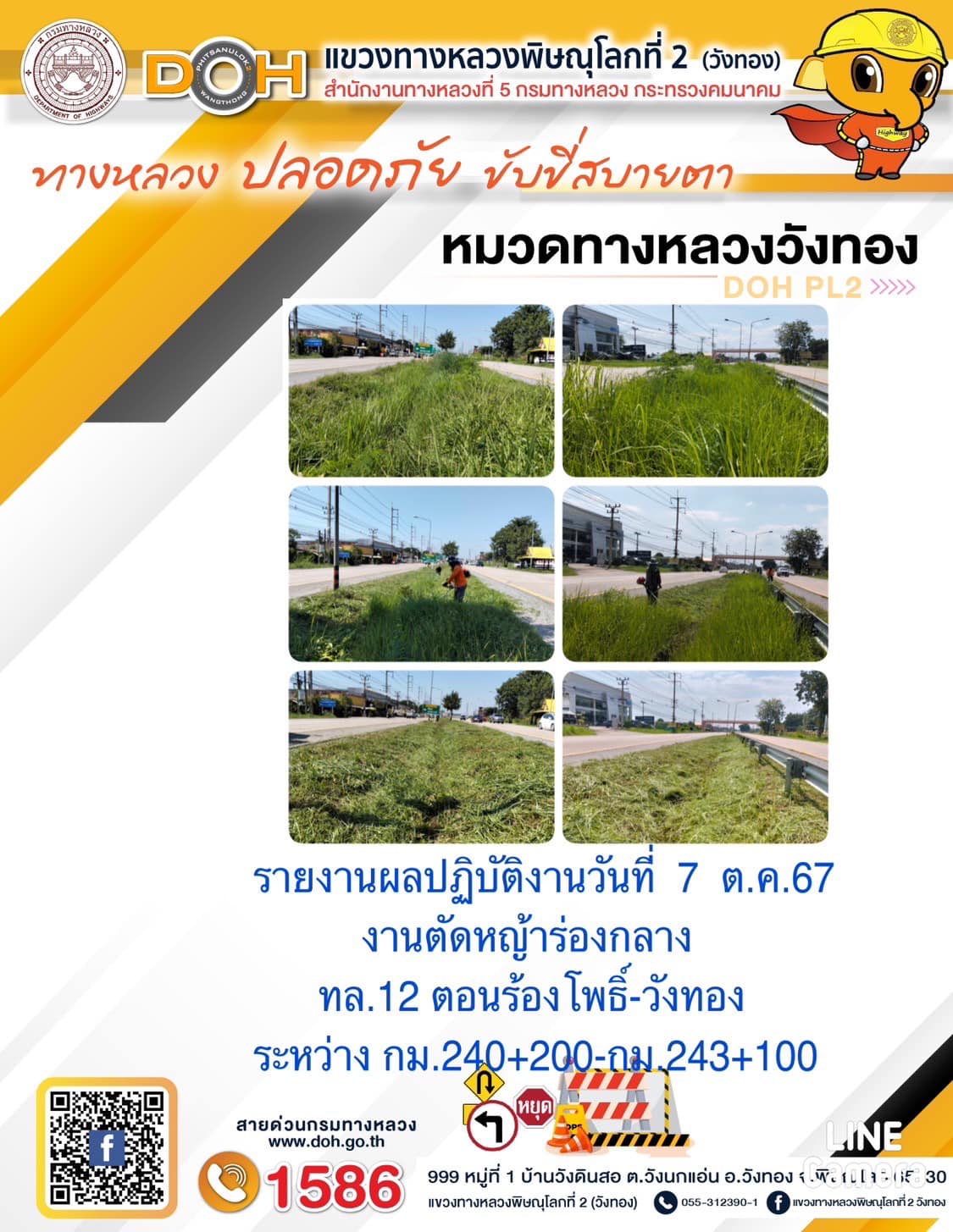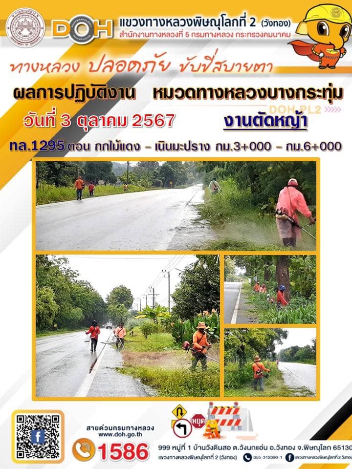 ผอ.แขวงทางหลวงพิษณุโลกที่ 2(วังทอง) นำทีม จนท.ดูการสาธิตทำแปลงทดลอง Green Control mat (ECM)