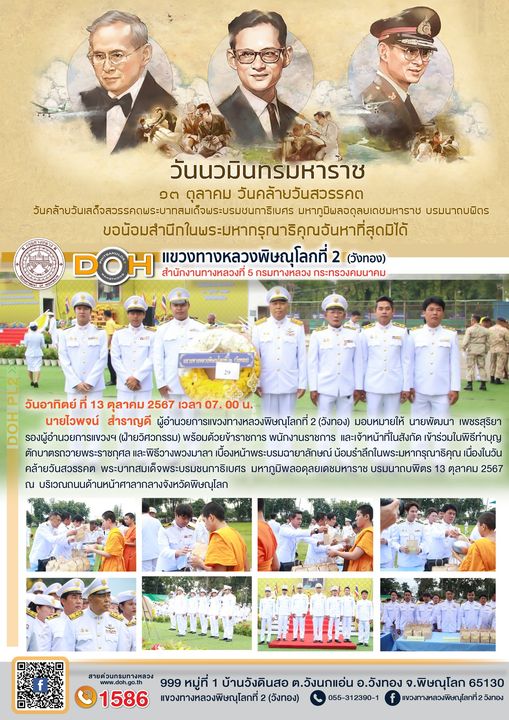 นายนรินทร์ ศรีสมพันธุ์ ผู้อำนวยการสำนักงานทางหลวงที่ 5 (พิษณุโลก) พร้อมคณะ ได้ตรวจเยี่ยม แขวงทางหลวงพิษณุโลกที่ 2 (วังทอง)