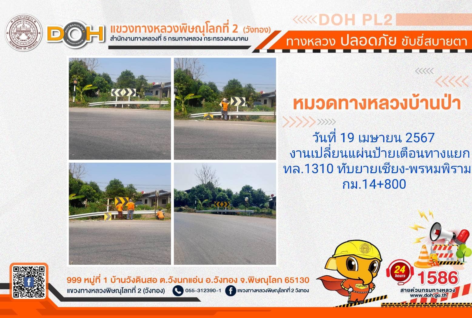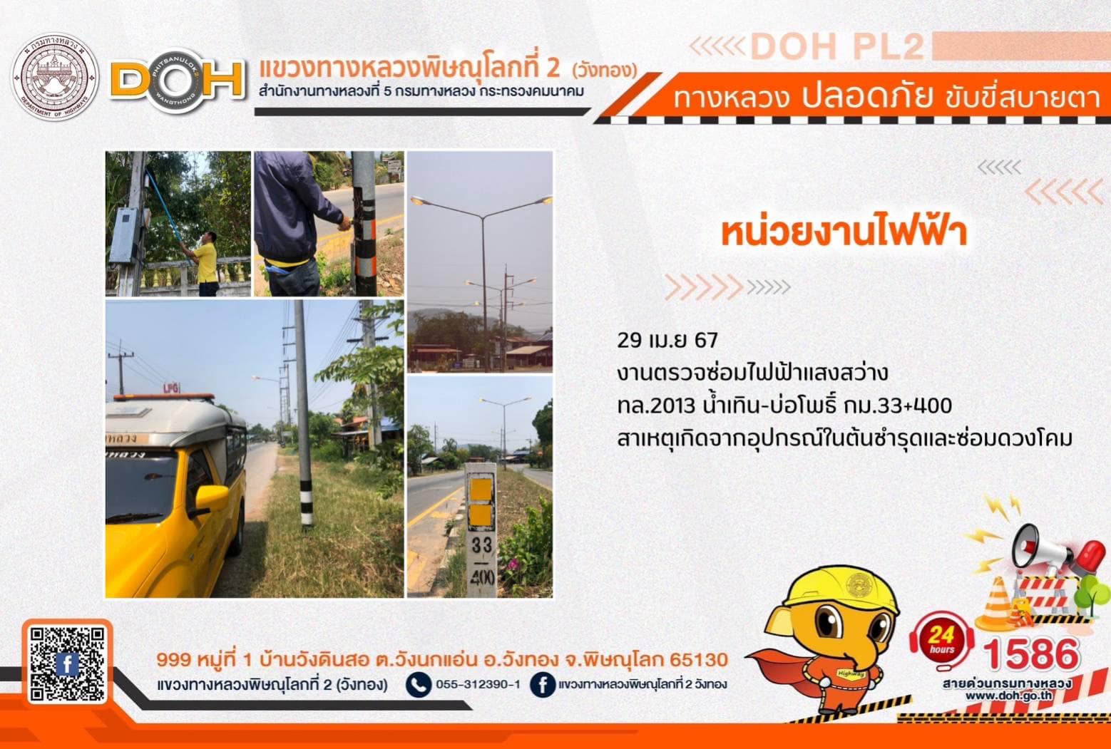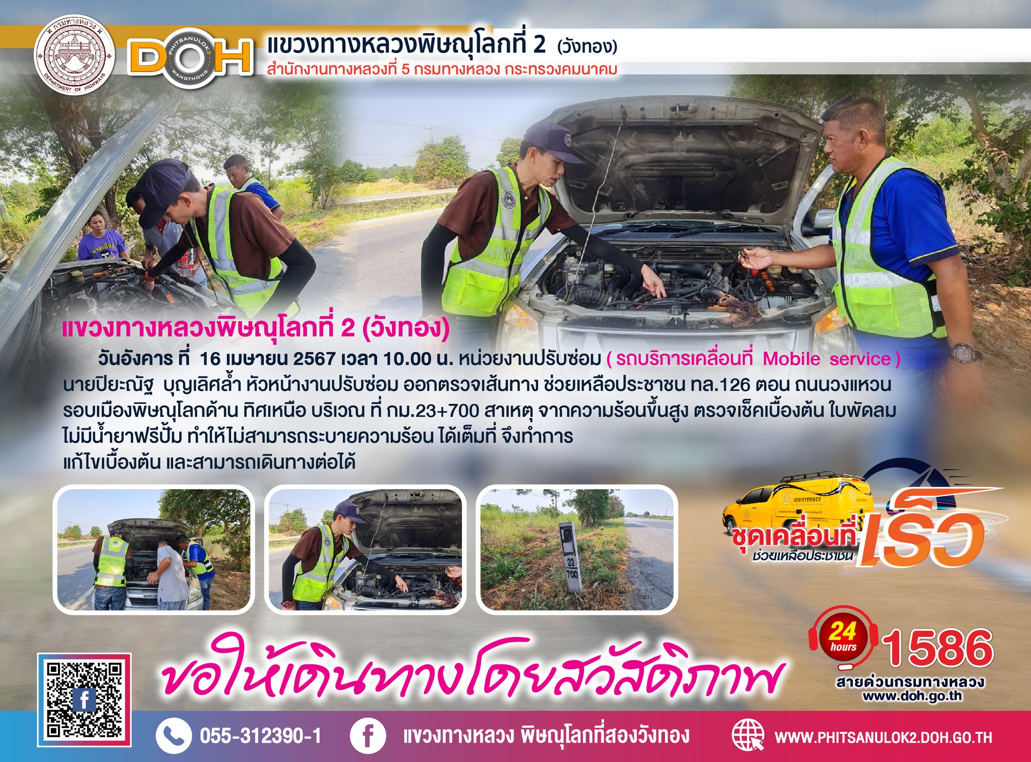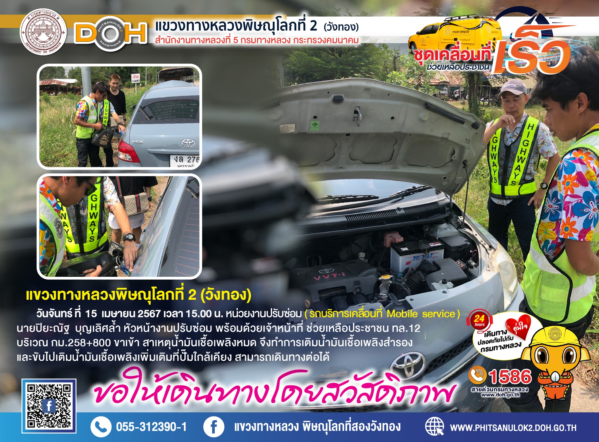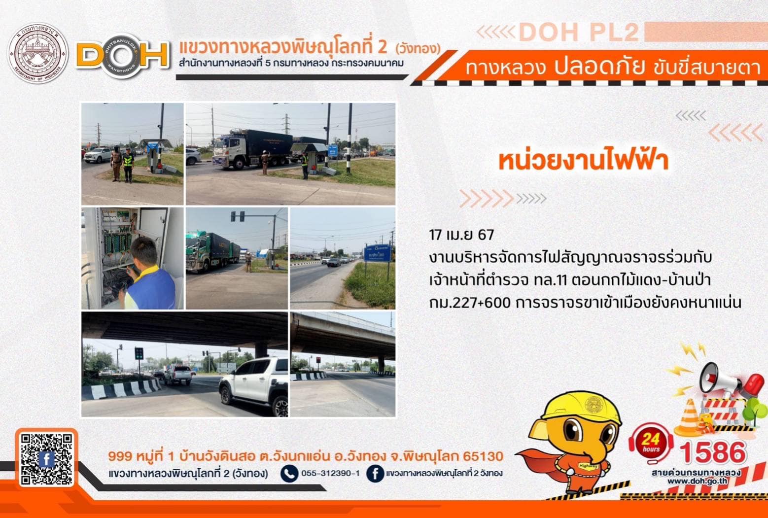 ตรวจเยี่ยม ศูนย์อำนวยความสะดวก และปลอดภัย แขวงทางหลวงพิษณุโลกที่ 2(วังทอง) บริเวณสี่แยกอินโดจีน