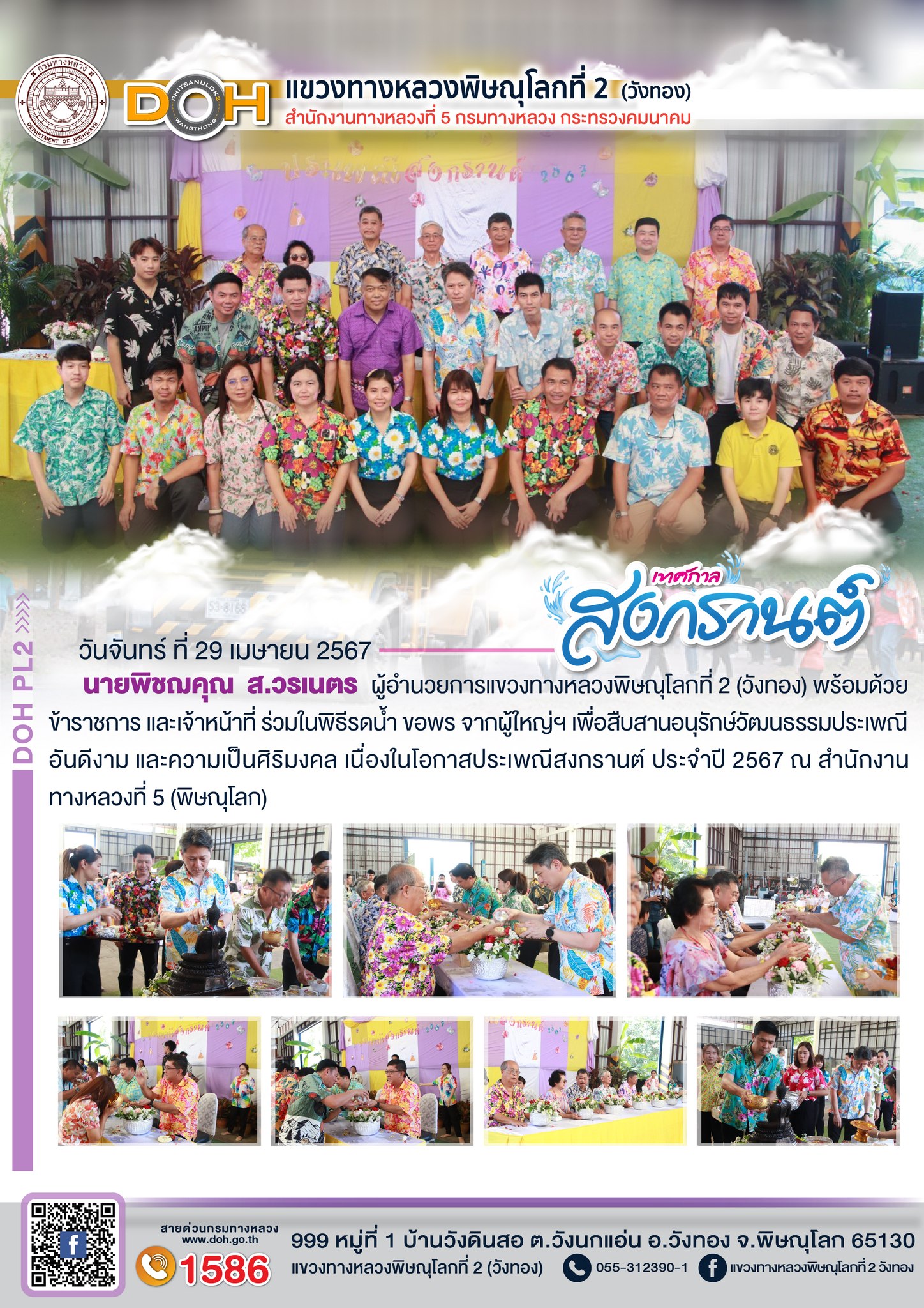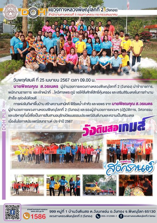 นายนรินทร์ ศรีสมพันธุ์ ผู้อำนวยการสำนักงานทางหลวงที่ 5 (พิษณุโลก) พร้อมคณะ ได้ตรวจเยี่ยม แขวงทางหลวงพิษณุโลกที่ 2 (วังทอง)