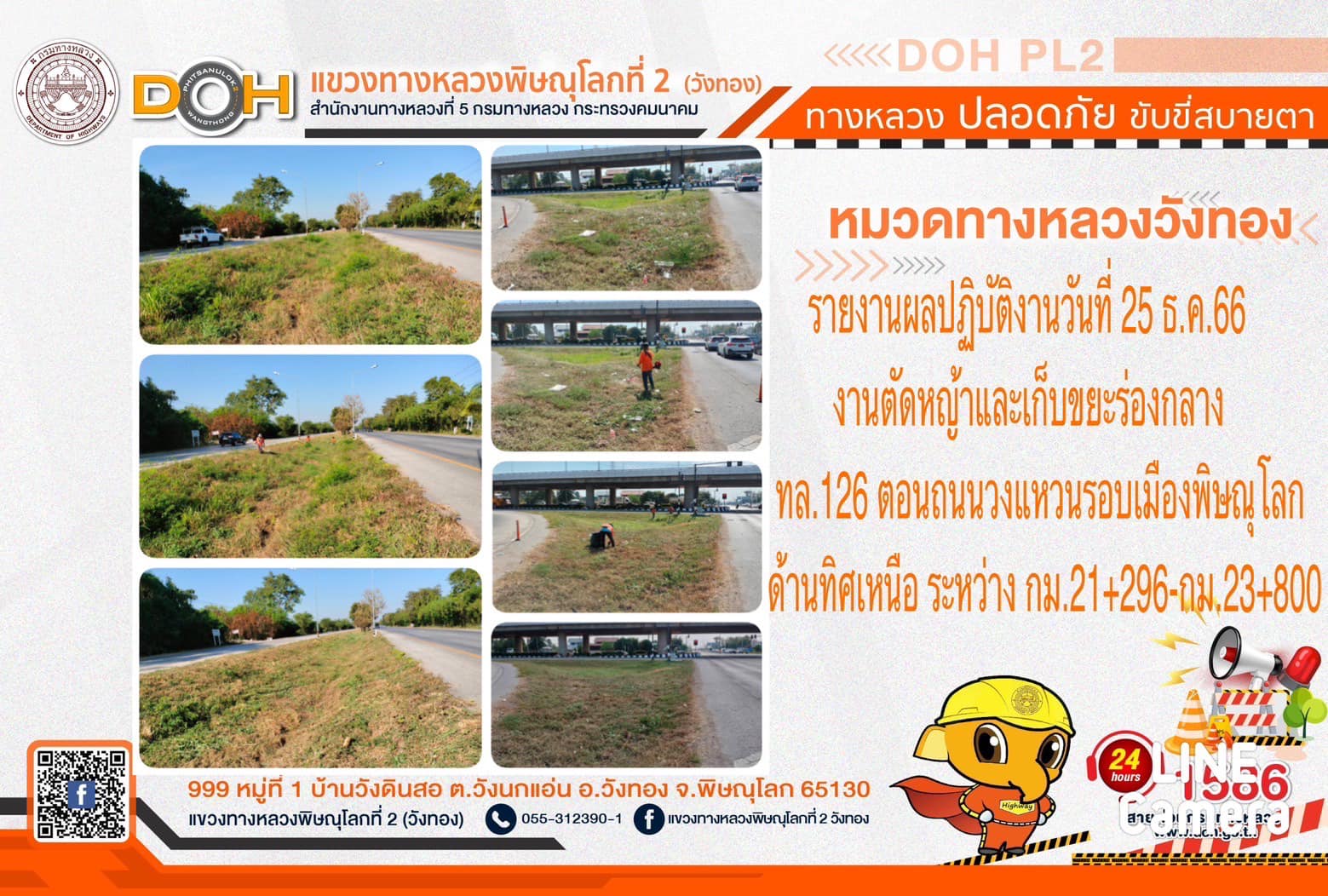 ผอ.แขวงทางหลวงพิษณุโลกที่ 2(วังทอง) นำทีม จนท.ดูการสาธิตทำแปลงทดลอง Green Control mat (ECM)