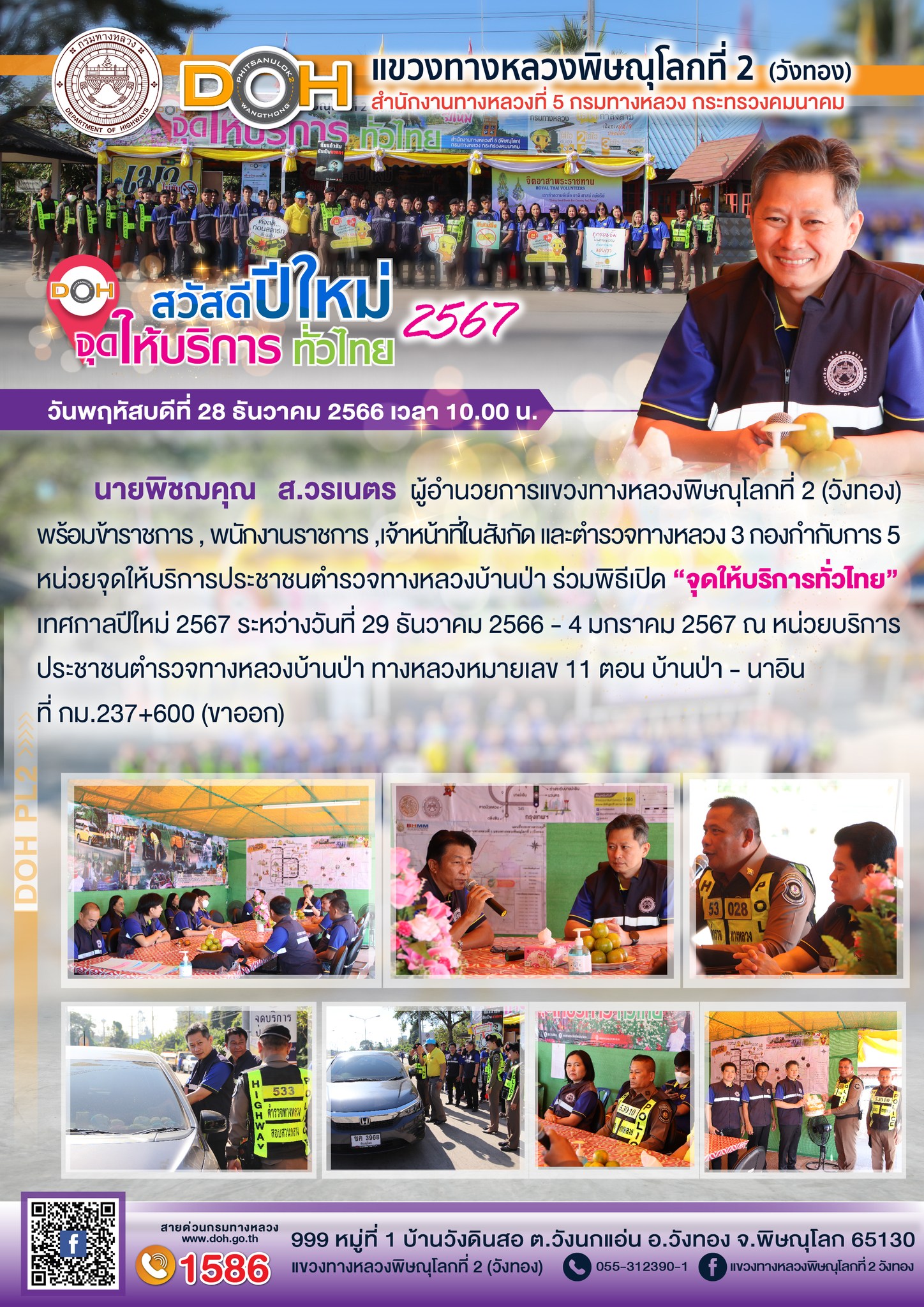 แขวงทางหลวงพิษณุโลกที่ 2 เปิดศูนย์อำนวยความสะดวกและปลอดภัยช่วงปีใหม่