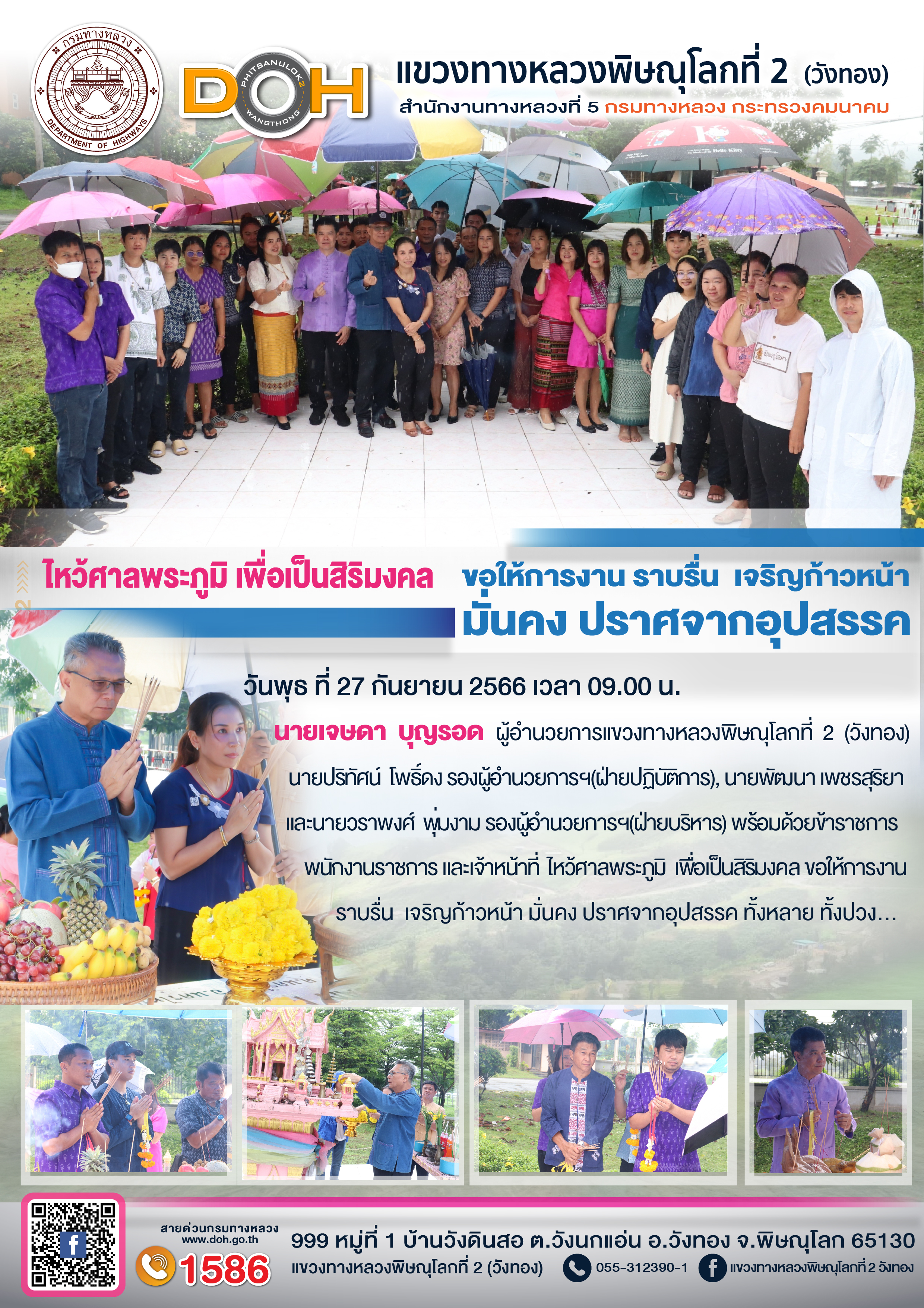 วันพุธที่ 27 กันยายน 2566 เวลา 09.00 น. ไหว้ศาลพระภูมิ |