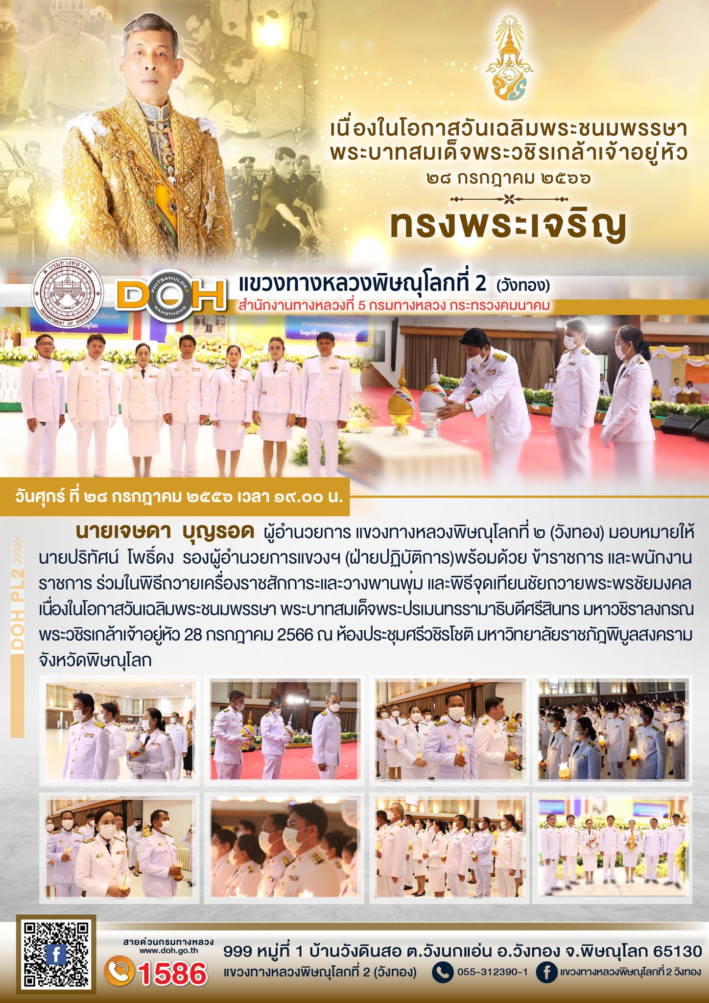นายนรินทร์ ศรีสมพันธุ์ ผู้อำนวยการสำนักงานทางหลวงที่ 5 (พิษณุโลก) พร้อมคณะ ได้ตรวจเยี่ยม แขวงทางหลวงพิษณุโลกที่ 2 (วังทอง)