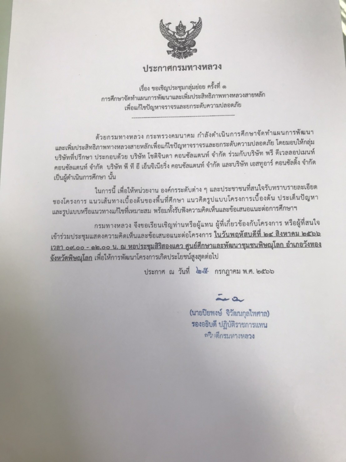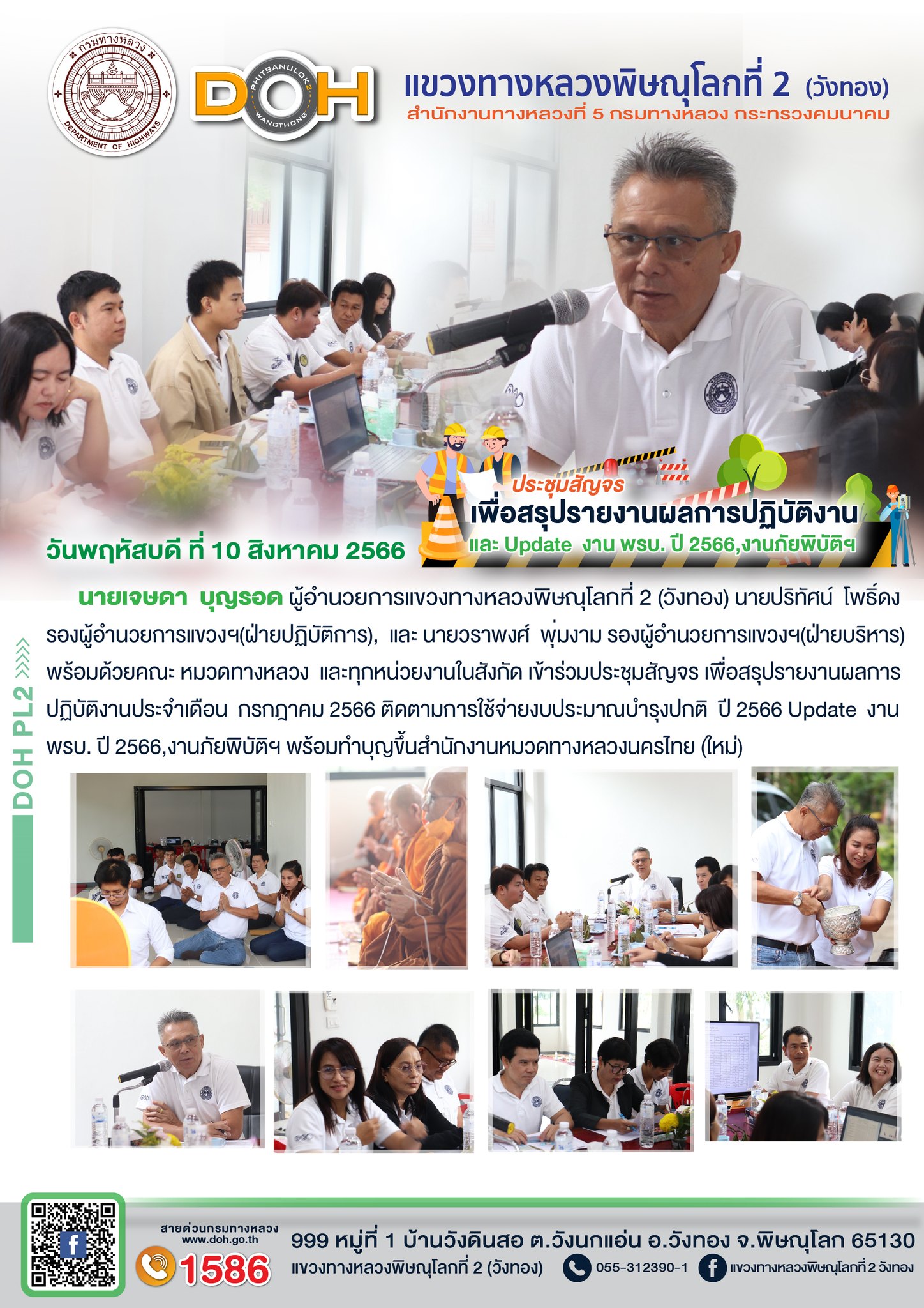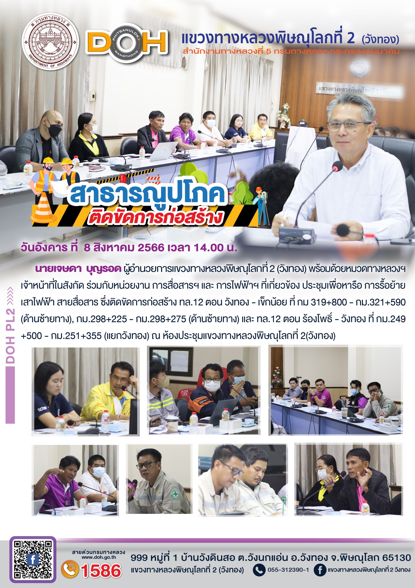 แขวงทางหลวงพิษณุโลกที่ 2 (วังทอง) จัดประชุมเพื่อปรึกษาหารือร่วมกัน กับ ผู้รับจ้าง ฯ