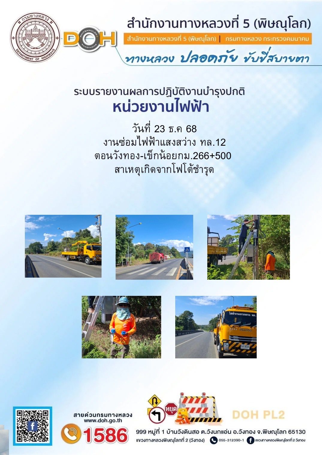 บริการประชาชนช่วงเทศกาลปีใหม่ 2562 แขวงทางหลวงพิษณุโลกที่ 2(วังทอง)