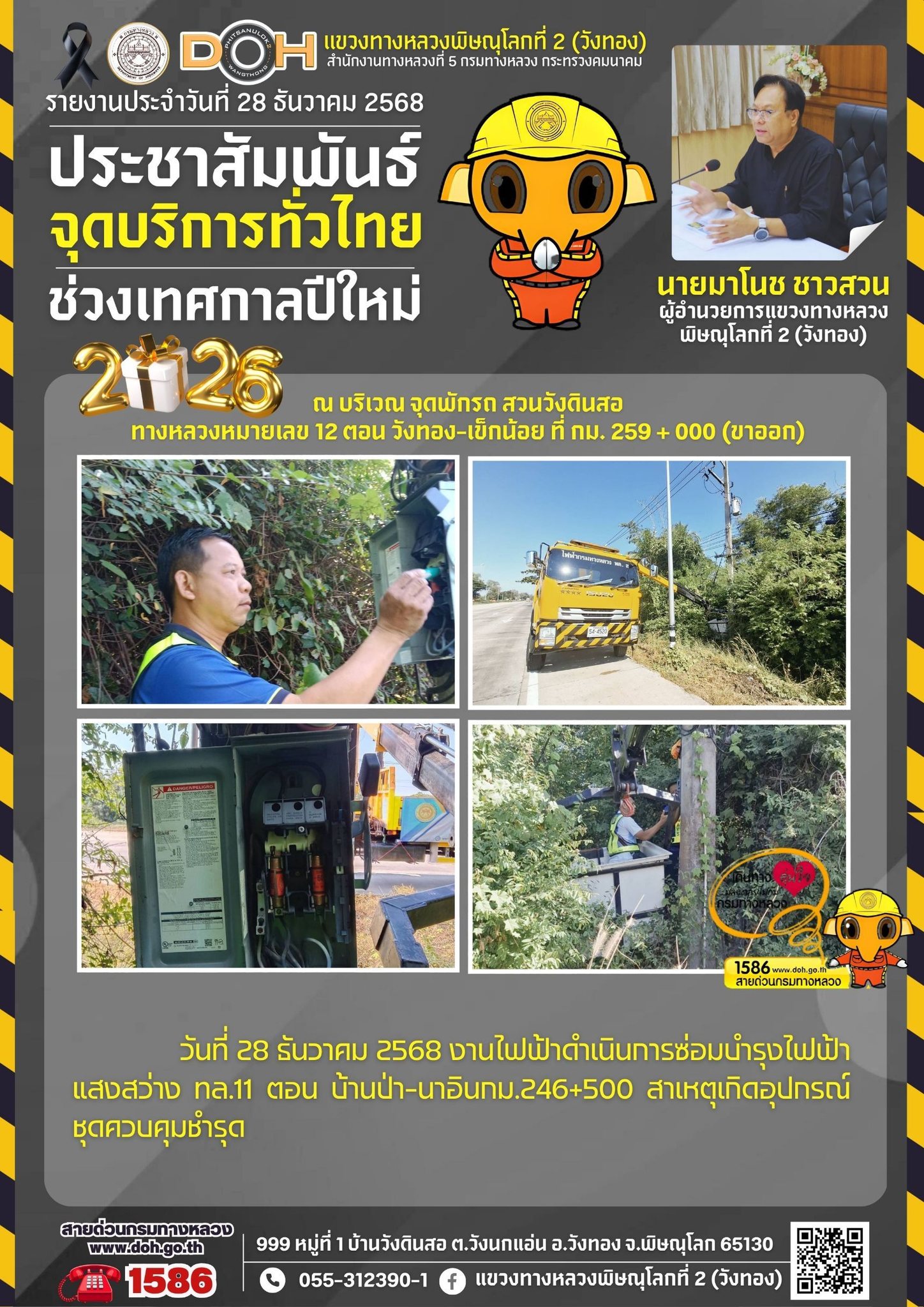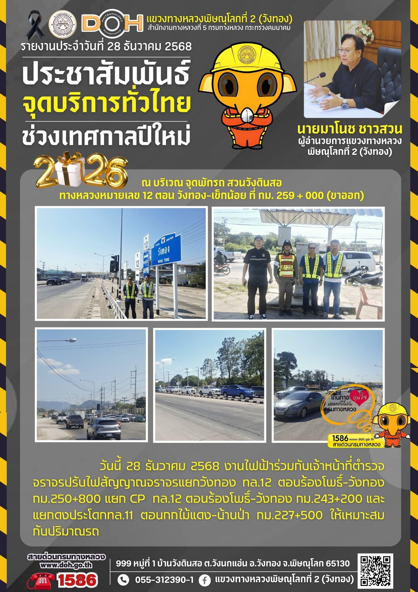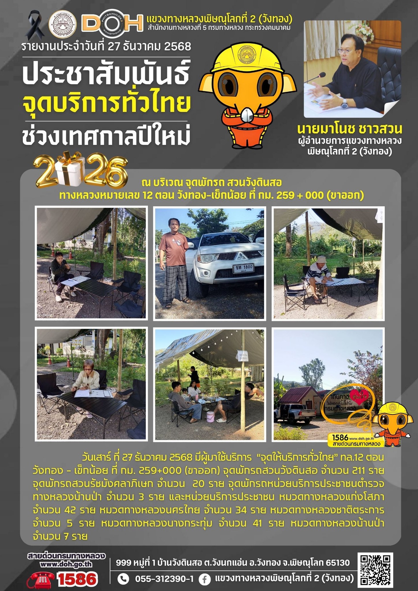 แขวงทางหลวงพิษณุโลกที่ 2 เปิดศูนย์อำนวยความสะดวกและปลอดภัยช่วงปีใหม่