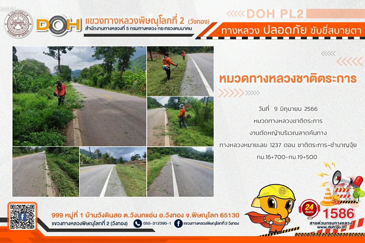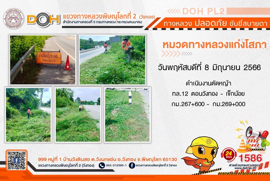 ผอ.แขวงทางหลวงพิษณุโลกที่ 2(วังทอง) นำทีม จนท.ดูการสาธิตทำแปลงทดลอง Green Control mat (ECM)