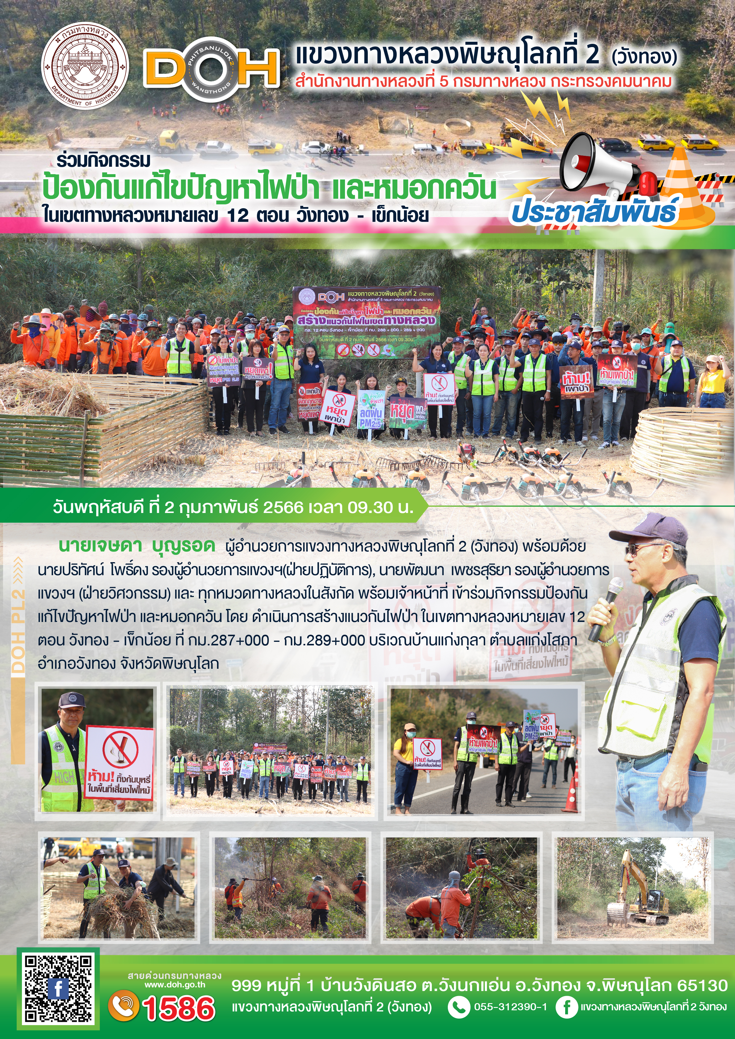 เข้าร่วม และดำเนินการสร้างแนวกันไฟป่า ในเขตทางหลวงหมายเลข 12 ตอน วังทอง - เข็กน้อย