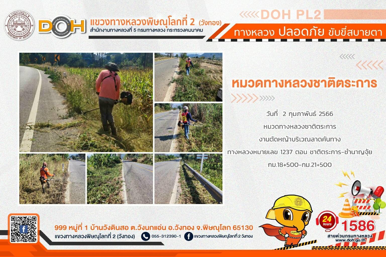 ผอ.แขวงทางหลวงพิษณุโลกที่ 2(วังทอง) นำทีม จนท.ดูการสาธิตทำแปลงทดลอง Green Control mat (ECM)