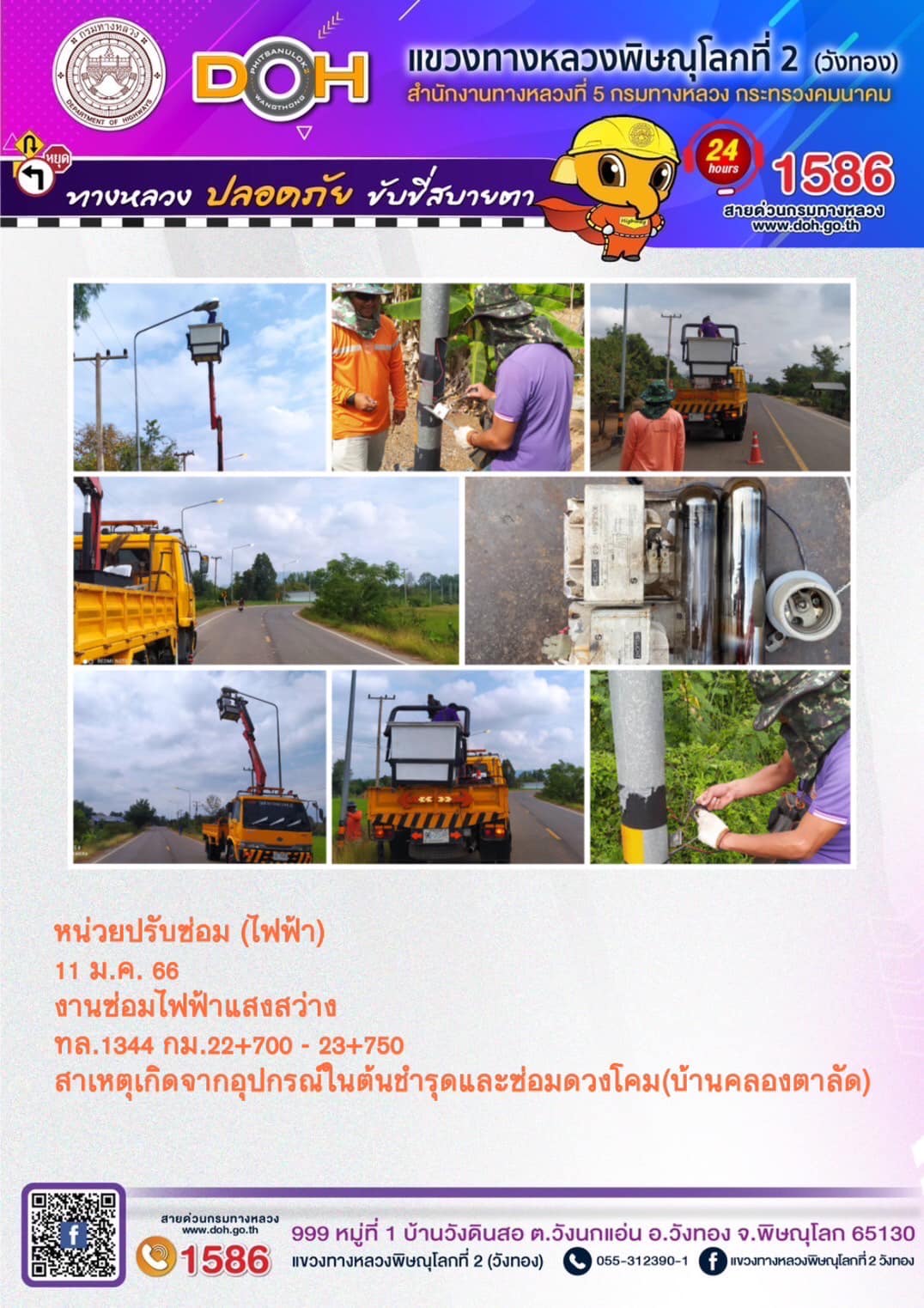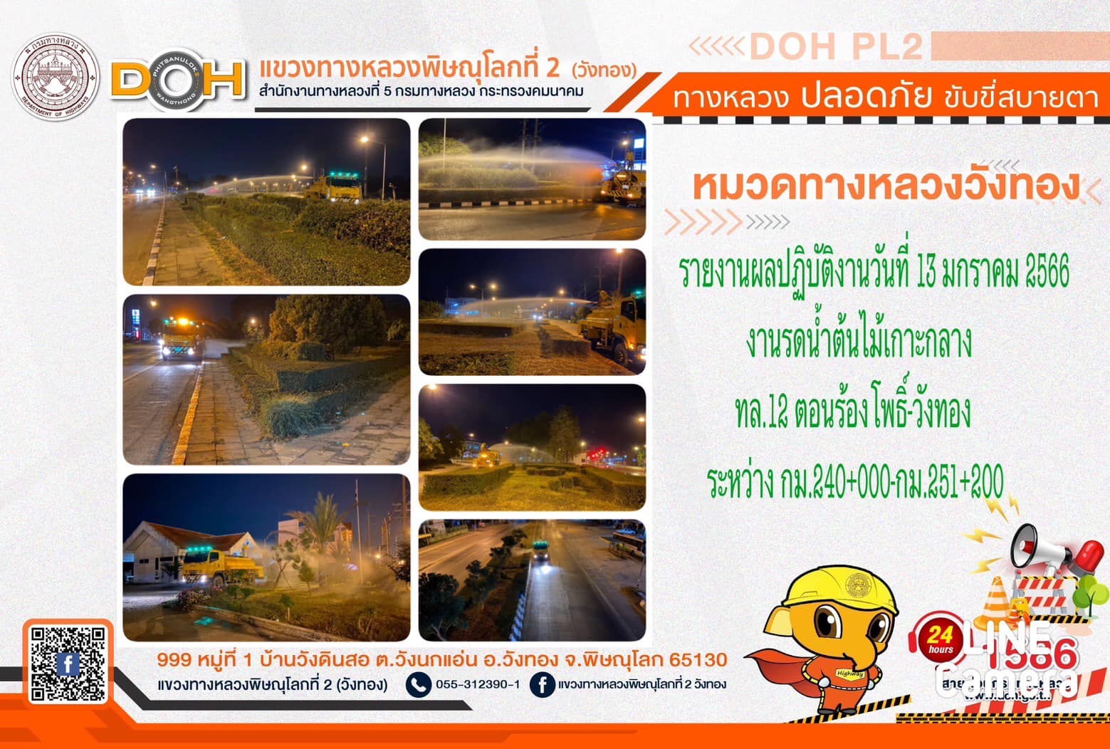 การปฏิบัติงาน ประจำ วันพฤหัสบดีที่ 19 มกราคม 2566 #1586 สายด่วนกรมทางหลวง