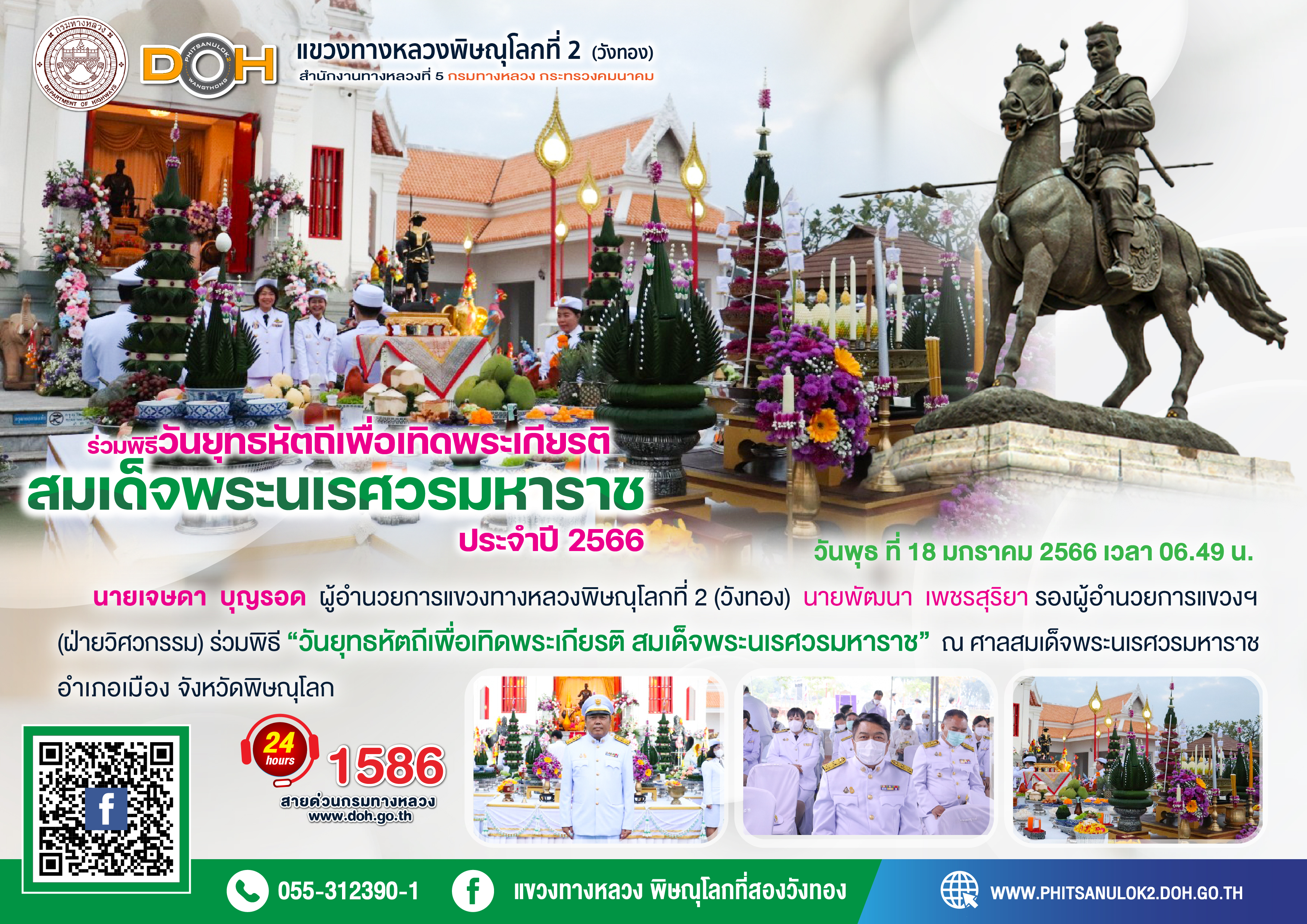 นายนรินทร์ ศรีสมพันธุ์ ผู้อำนวยการสำนักงานทางหลวงที่ 5 (พิษณุโลก) พร้อมคณะ ได้ตรวจเยี่ยม แขวงทางหลวงพิษณุโลกที่ 2 (วังทอง)
