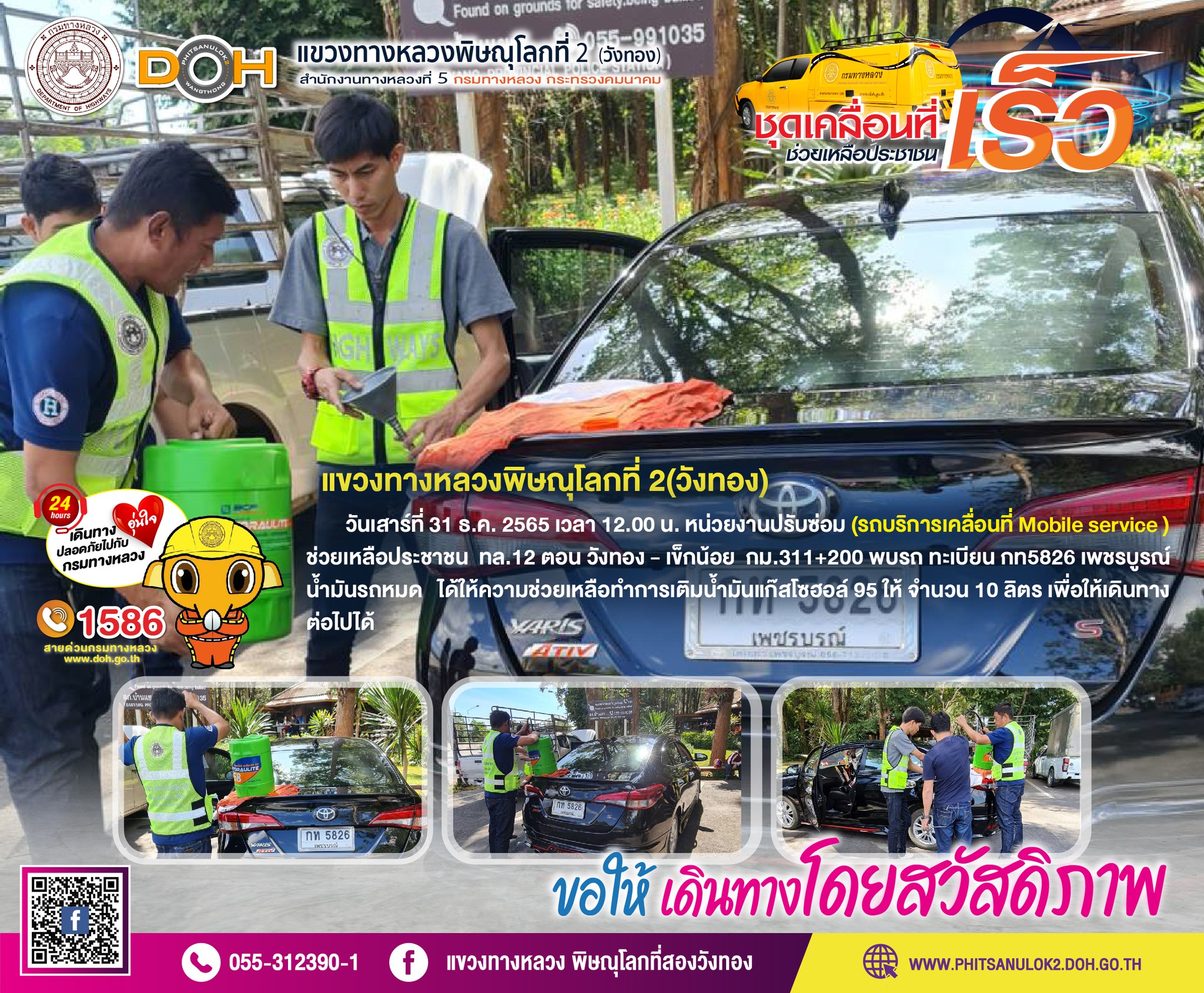 วันเสาร์ที่ 31 ธ.ค. 2565 เวลา 12.00 น. หน่วยงานปรับซ่อม รถบริการเคลื่อนที่ (Mobile service) ช่วยเหลือประชาชน ทล.12