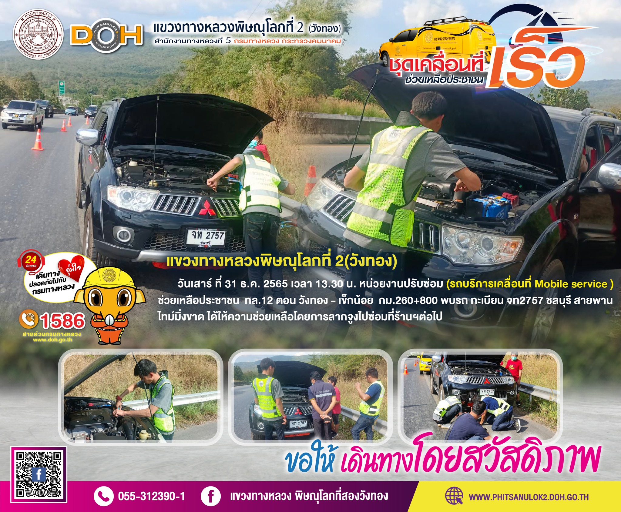 วันเสาร์ที่ 31 ธ.ค. 2565 เวลา 13.30 น. หน่วยงานปรับซ่อม รถบริการเคลื่อนที่ (Mobile service) ช่วยเหลือประชาชน ทล.12