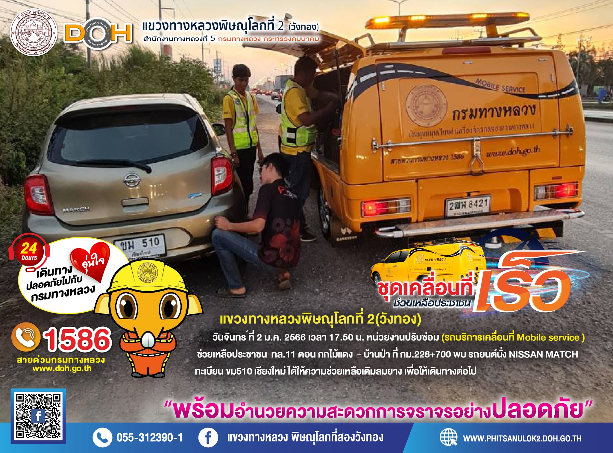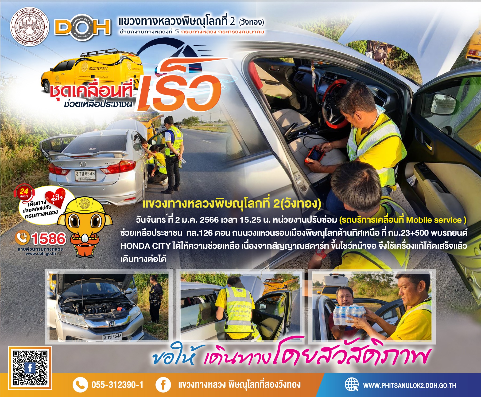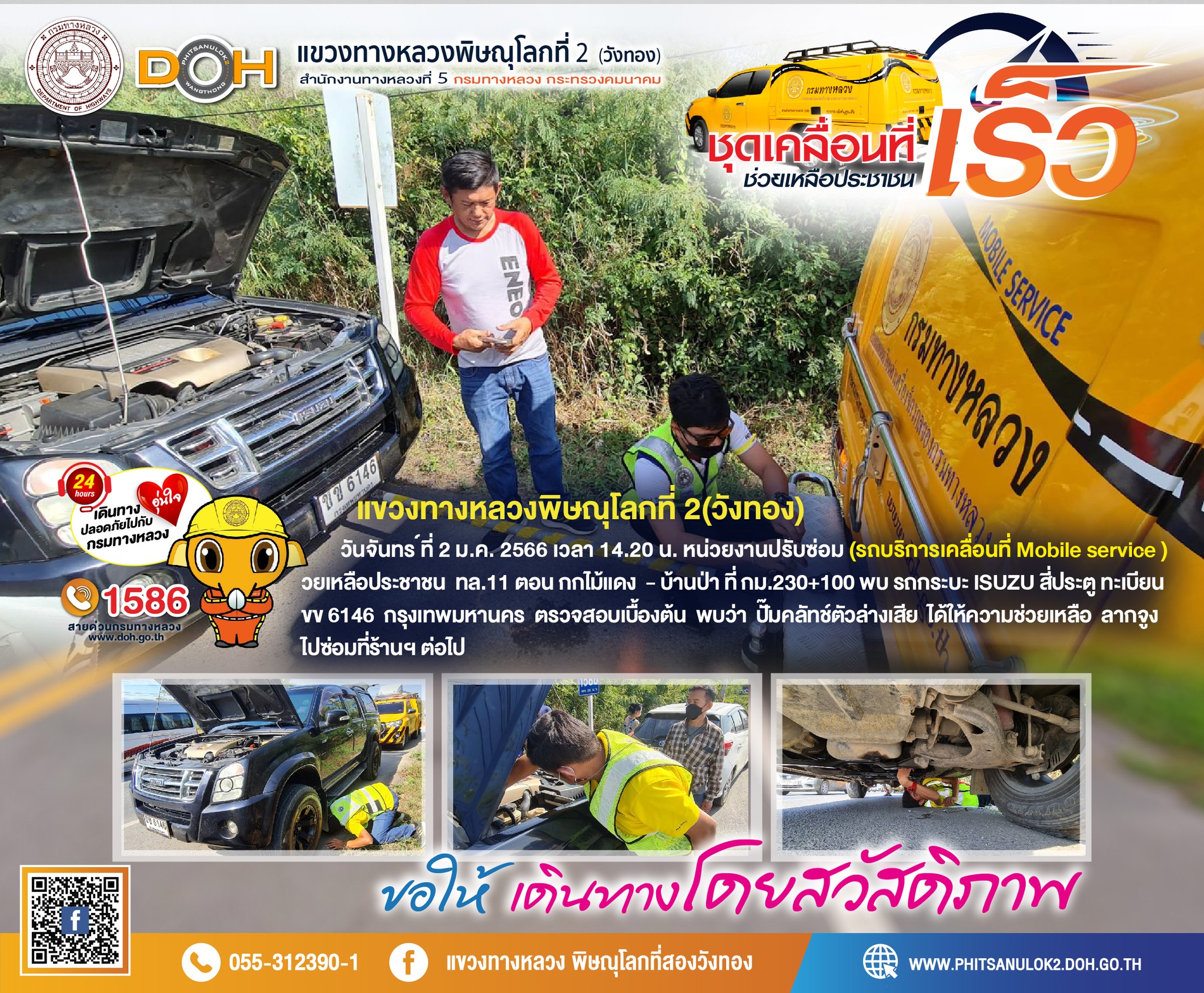 วันจันทร์ที่ 2 มกราคม 2566 เวลา 15.25 น. หน่วยงานปรับซ่อม รถบริการเคลื่อนที่ (Mobile service) ช่วยเหลือประชาชน