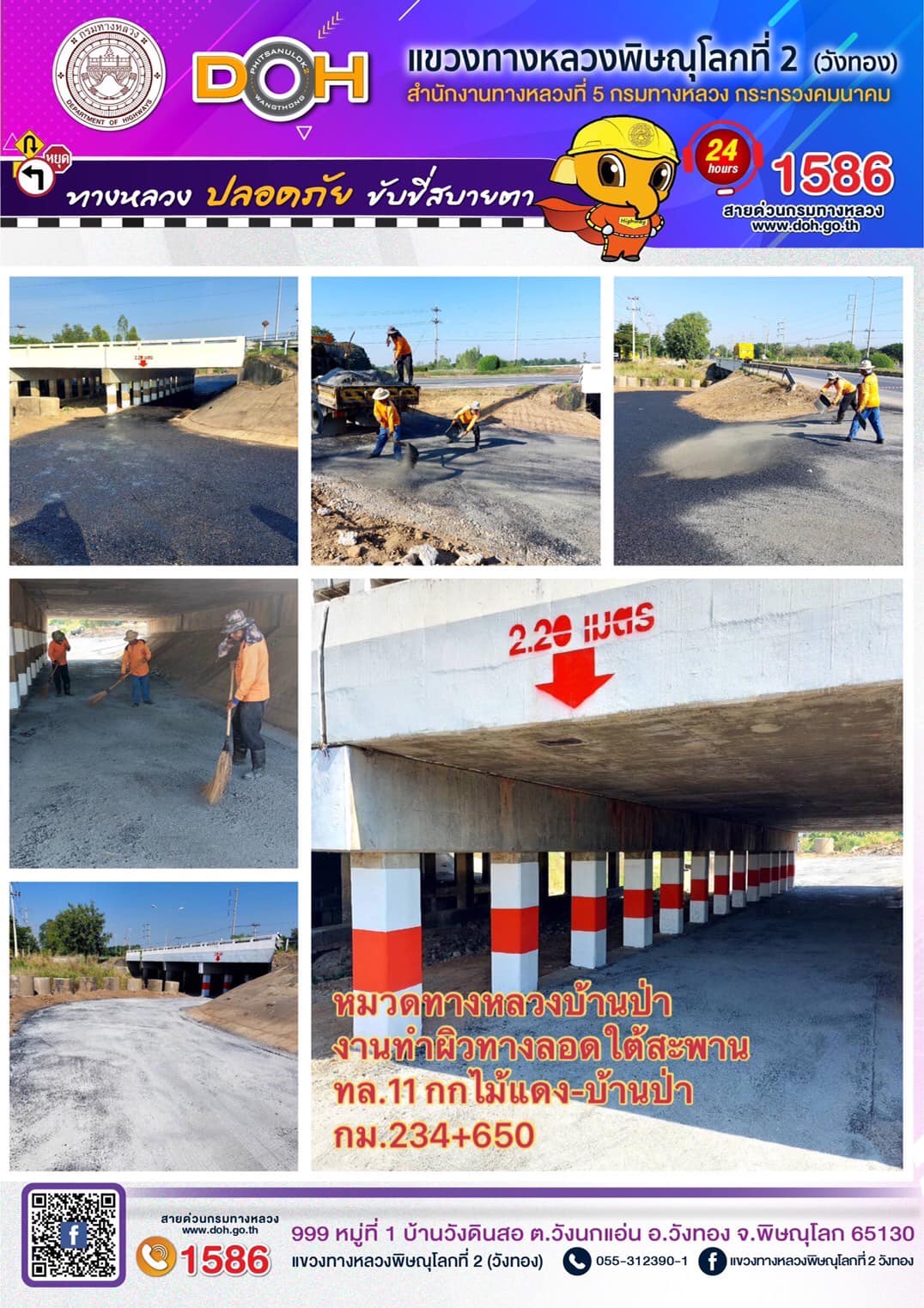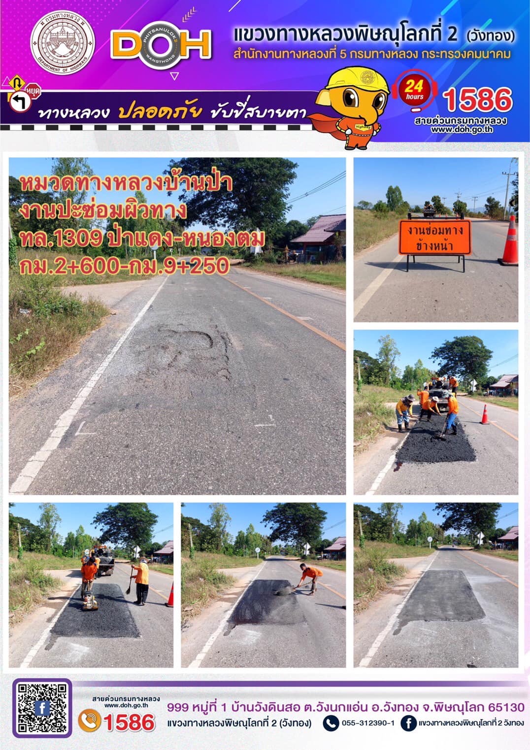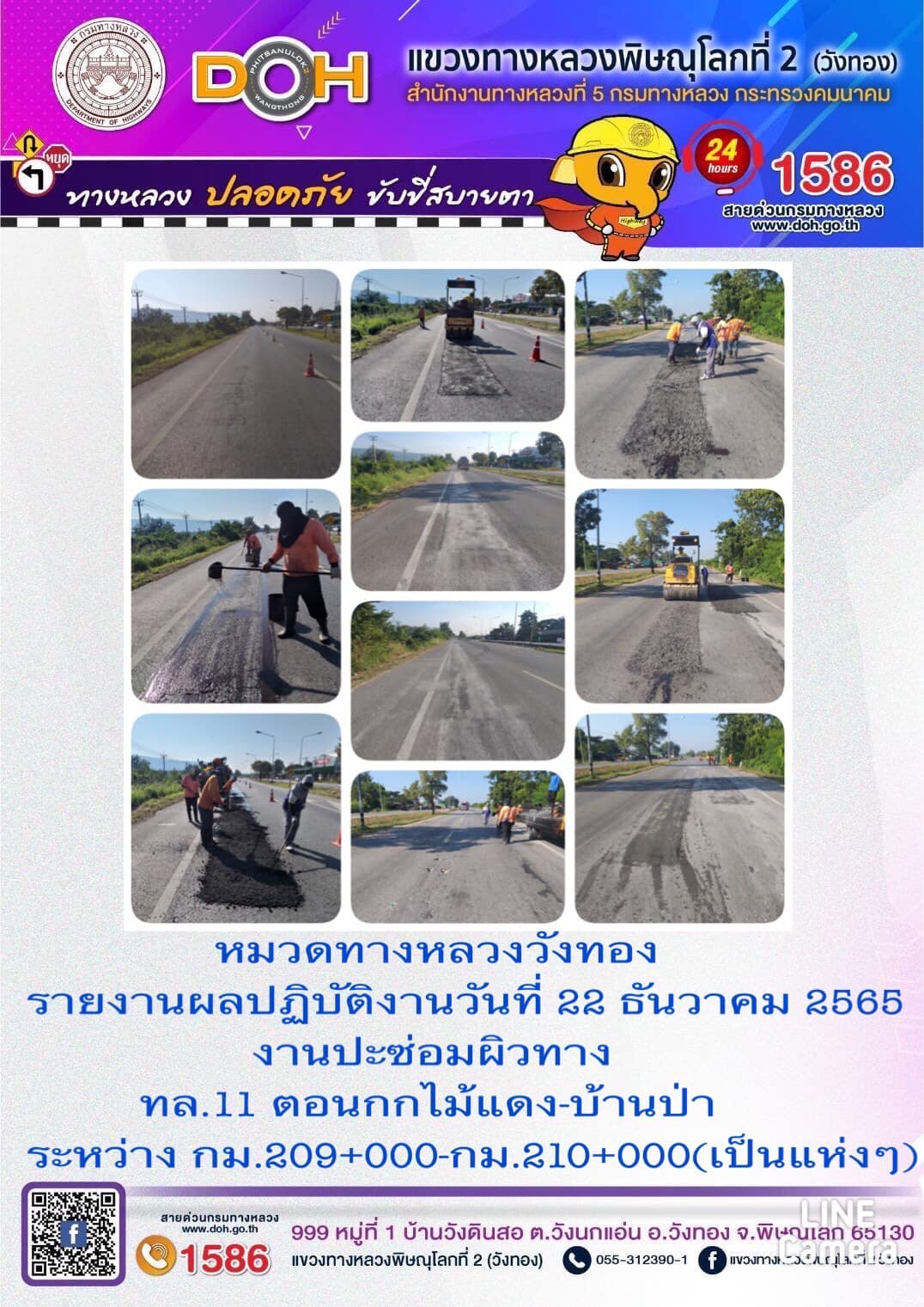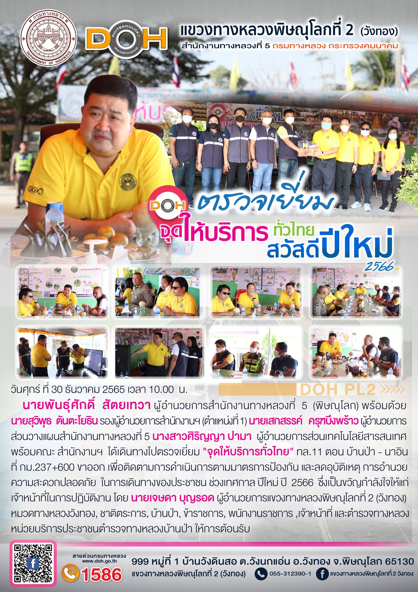 ตรวจเยี่ยม ศูนย์อำนวยความสะดวก และปลอดภัย แขวงทางหลวงพิษณุโลกที่ 2(วังทอง) บริเวณสี่แยกอินโดจีน