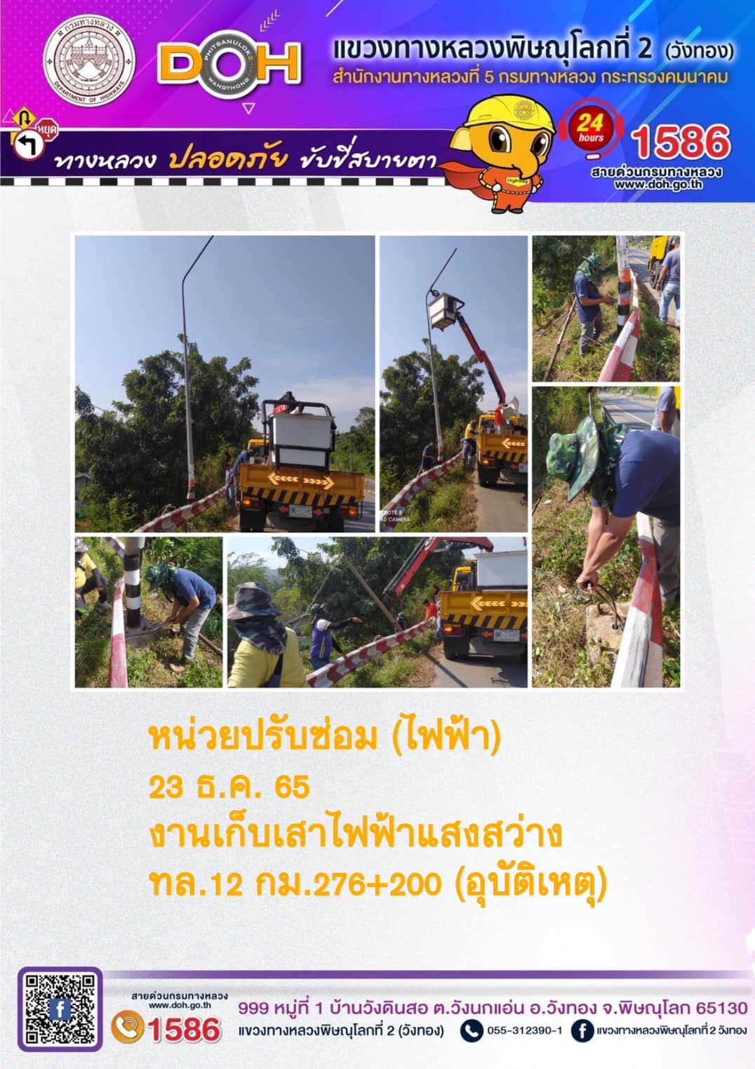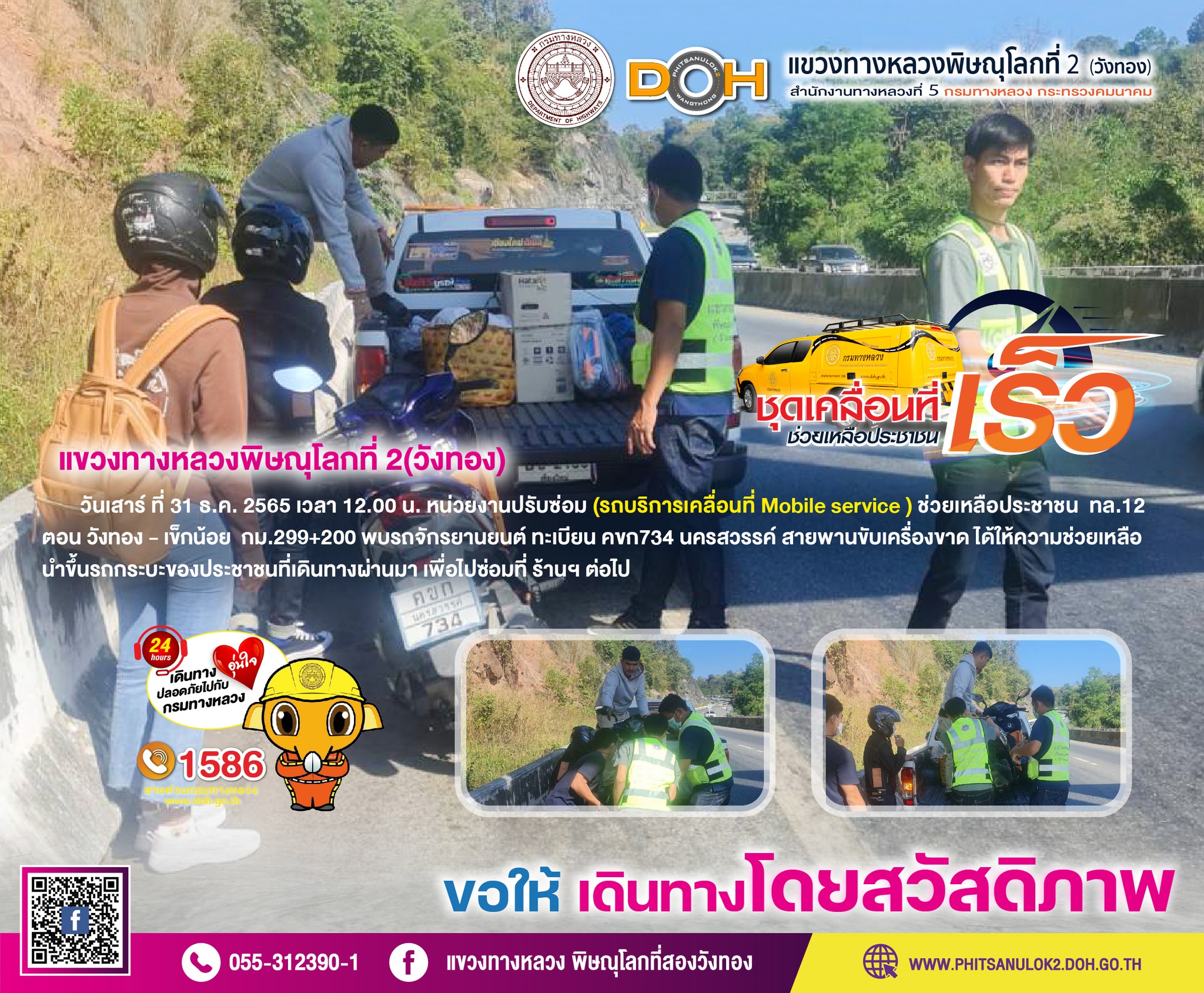 บริการประชาชนช่วงเทศกาลปีใหม่ 2562 แขวงทางหลวงพิษณุโลกที่ 2(วังทอง)