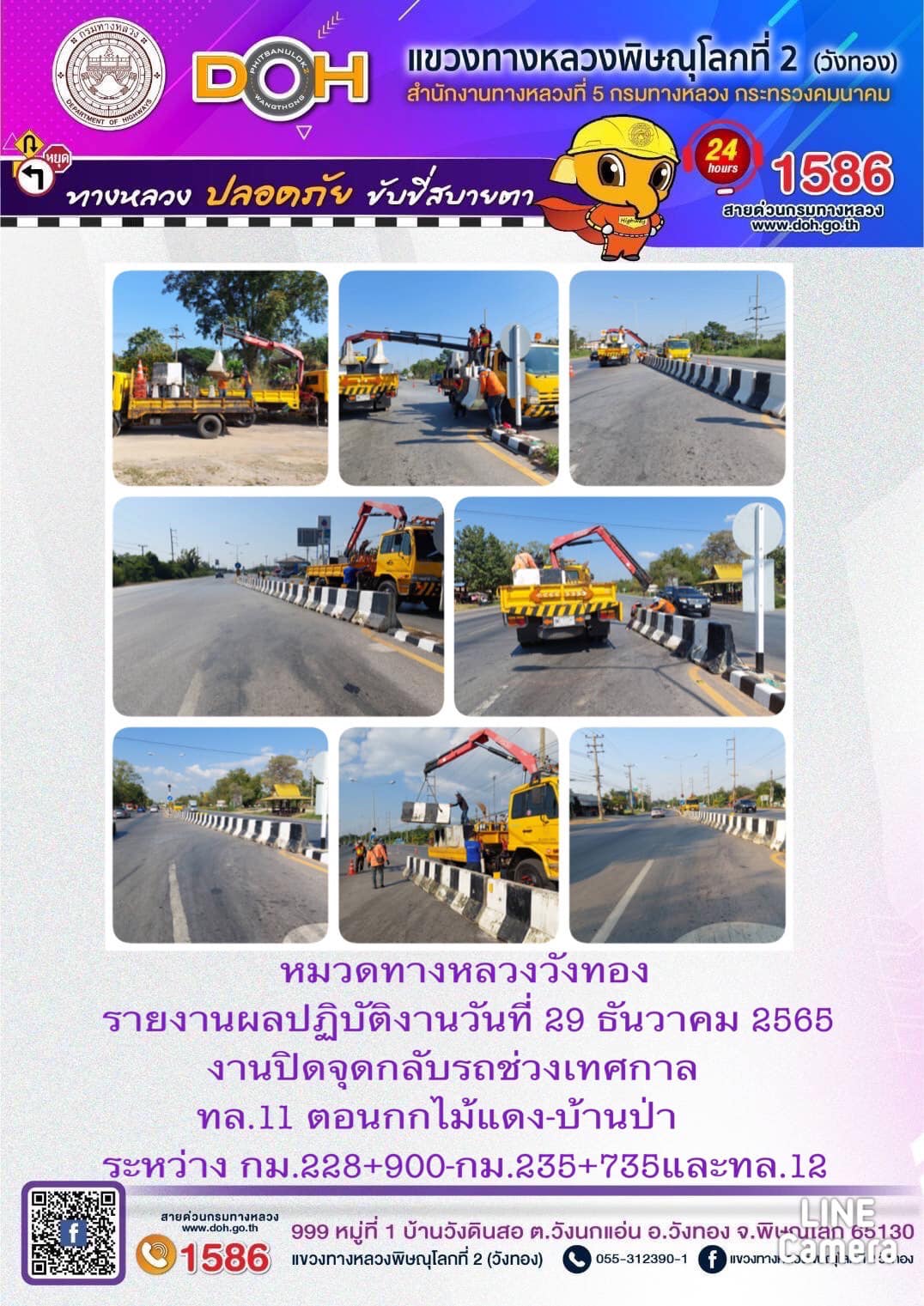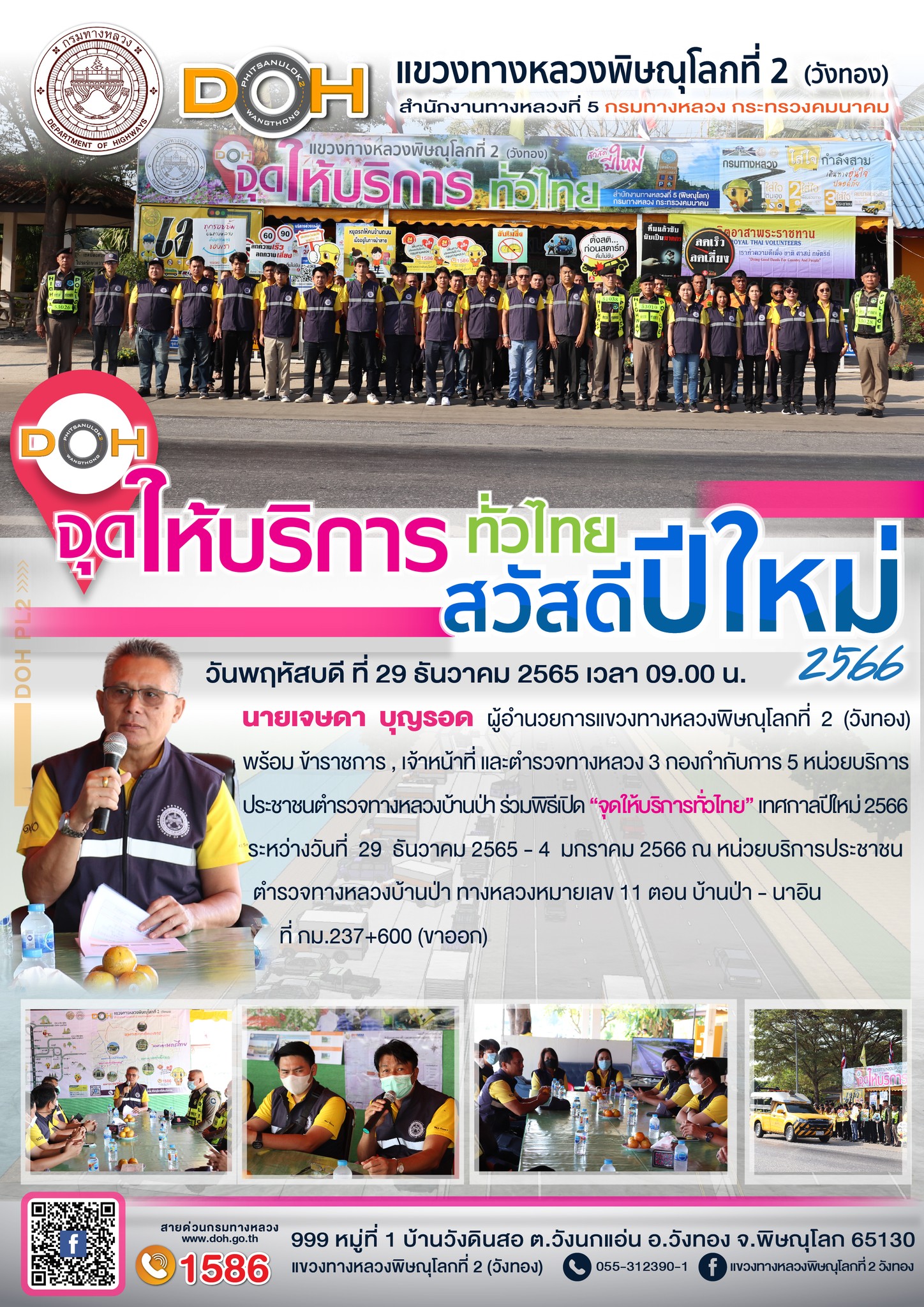 แขวงทางหลวงพิษณุโลกที่ 2 เปิดศูนย์อำนวยความสะดวกและปลอดภัยช่วงปีใหม่
