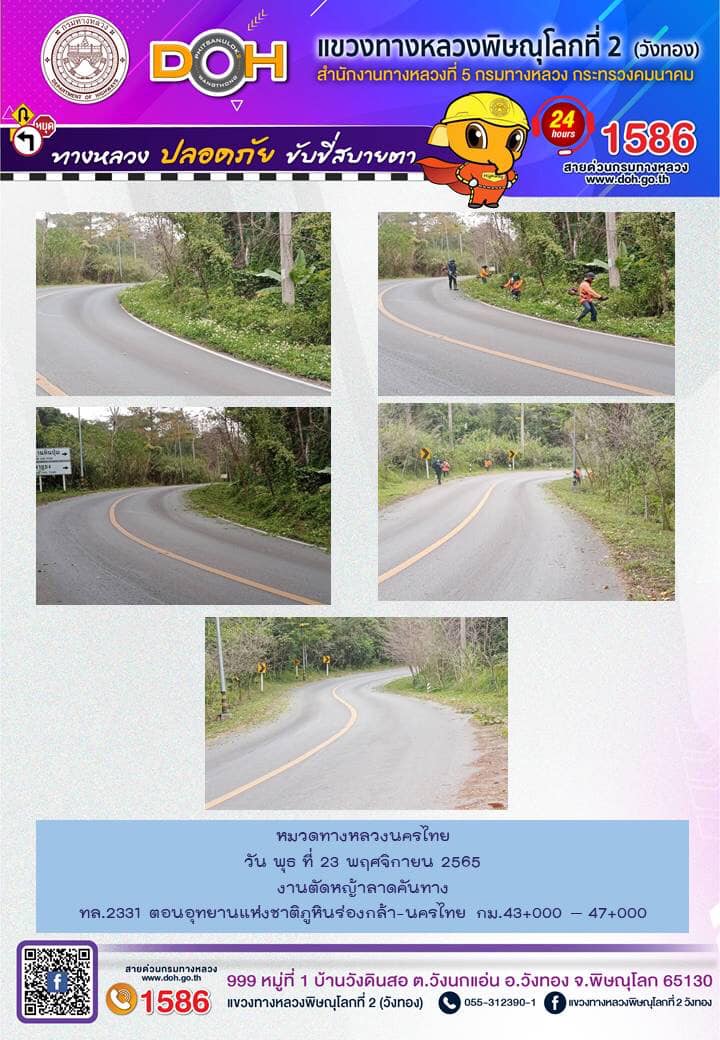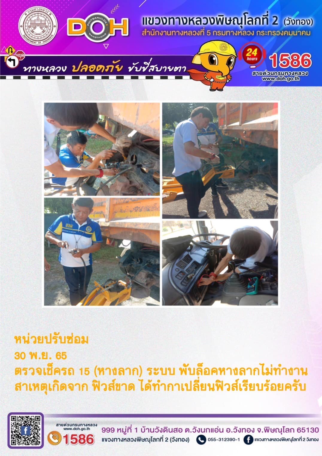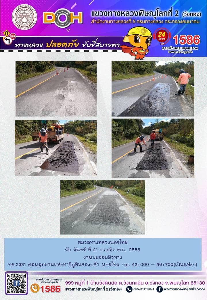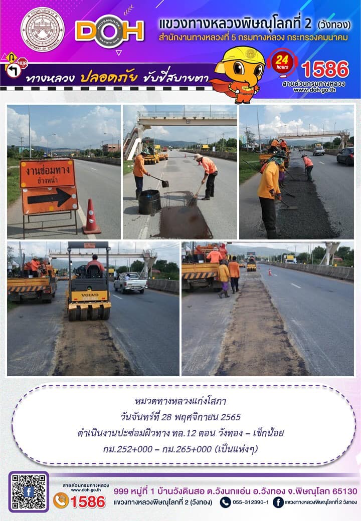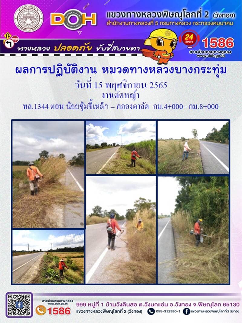 การปฏิบัติงานของ หมวดทางหลวง และ หน่วยงานในสังกัด เพื่ออำนวยความสะดวก และปลอดภัยให้กับประชาชนผู้ใช้เส้นทาง ประจำ วันอังคารที่ 15 พฤศจิกายน 2565