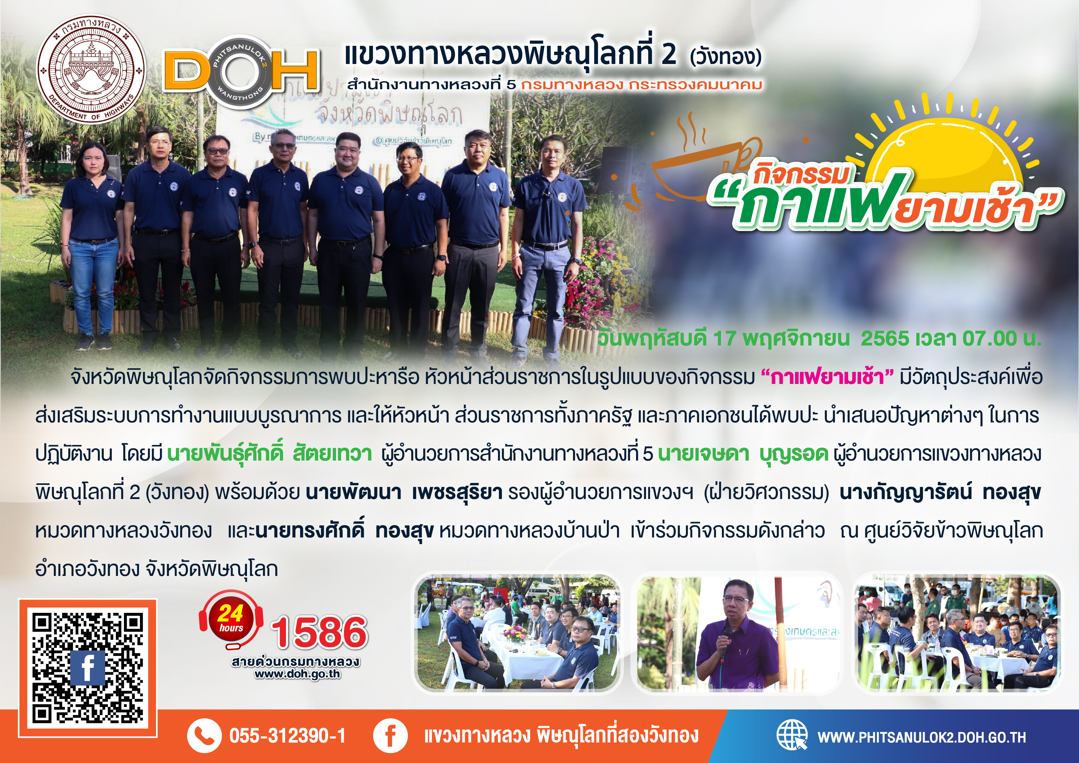 ตรวจเยี่ยม ศูนย์อำนวยความสะดวก และปลอดภัย แขวงทางหลวงพิษณุโลกที่ 2(วังทอง) บริเวณสี่แยกอินโดจีน