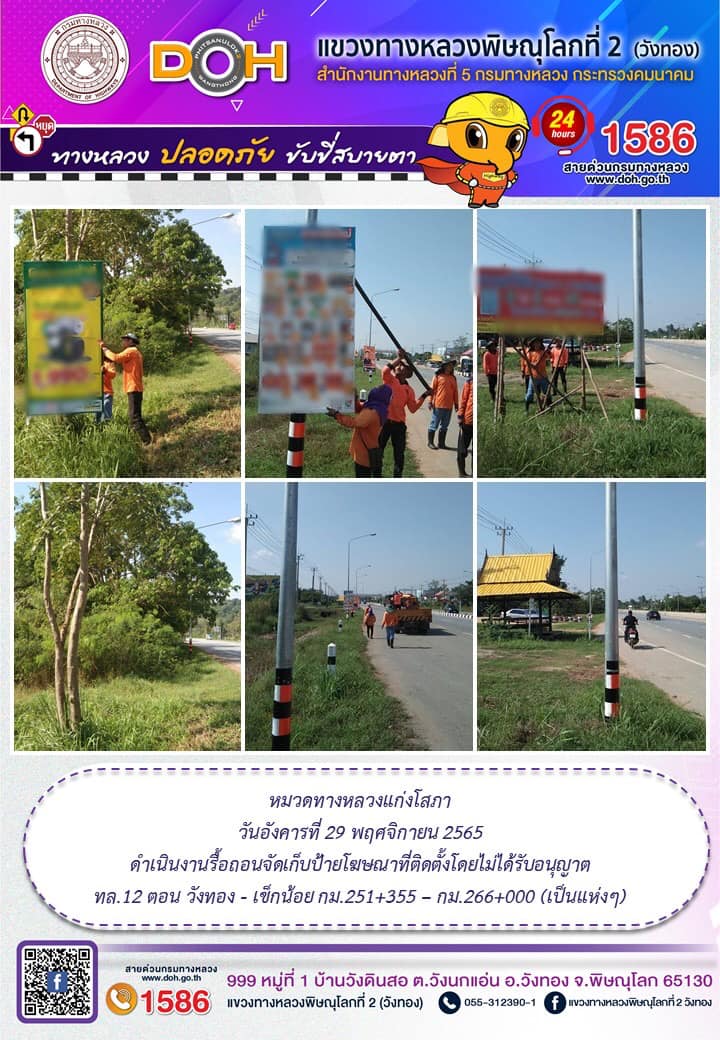 การปฏิบัติงานของ หมวดทางหลวง และ หน่วยงานในสังกัด ประจำ วันอังคารที่ 29 พฤศจิกายน 2565