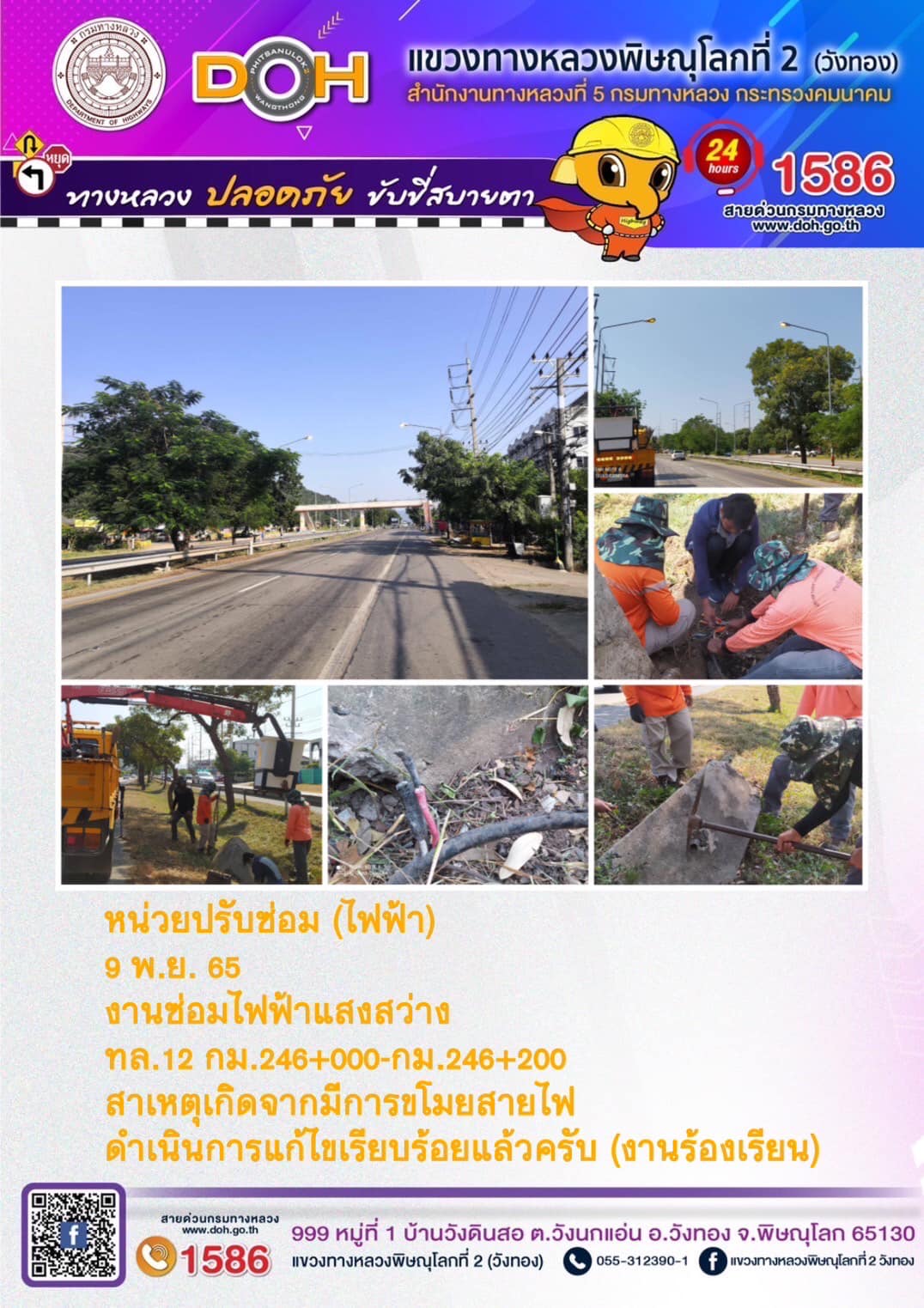 งานอำนวยความปลอดภัย ดำเนินการตรวจสอบปรับปรุง ไฟฟ้าแสงสว่างริมทางหลวงบริเวณองค์การบริหารส่วนตําบลท่าหมื่นราม อําเภอวังทอง จังหวัดพิษณุโลก