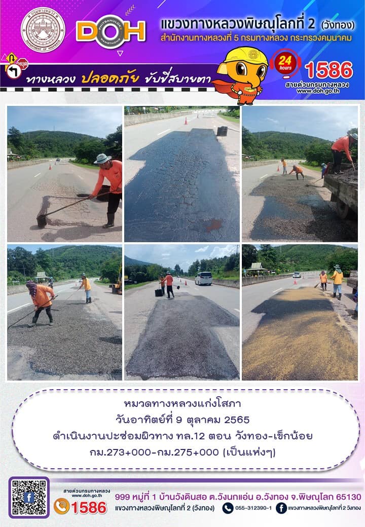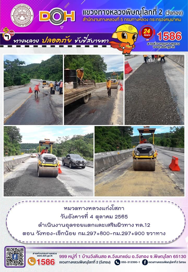 ลงพื้นที่ตรวจสอบสายทางที่ได้รับความเสียหายจากภัยพิบัติ ทล.12 ตอน วังทอง - เข็กน้อย