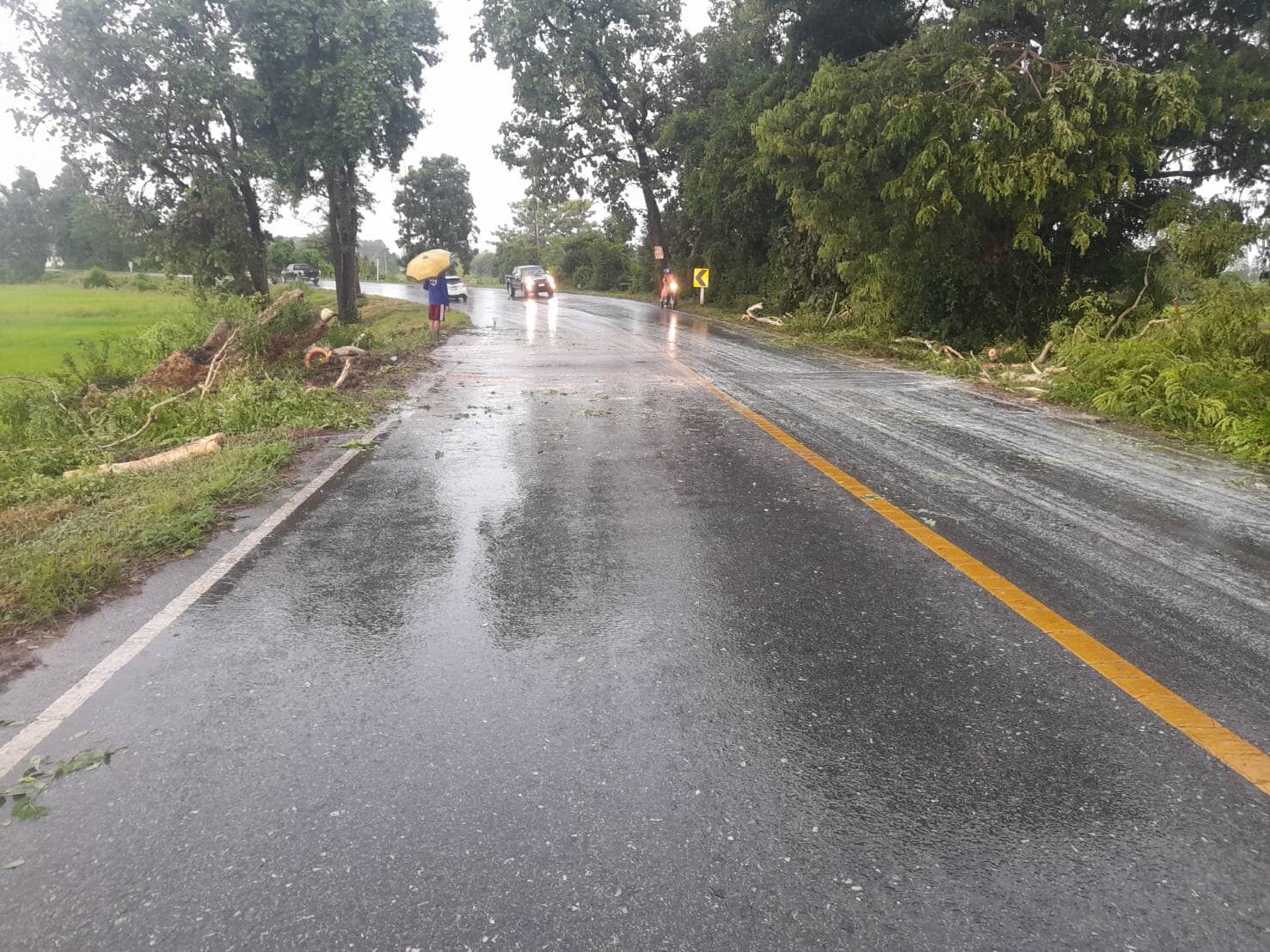 ฝนตกหนักลมกรรโชกแรงต้นไม้ล้มทับทาง บริเวณทางหลวงหมายเลข 1086 วัดโบสถ์