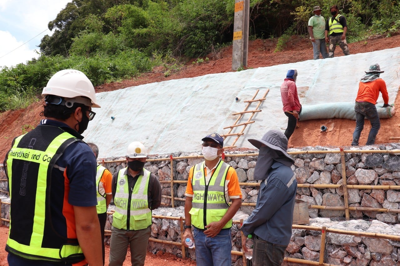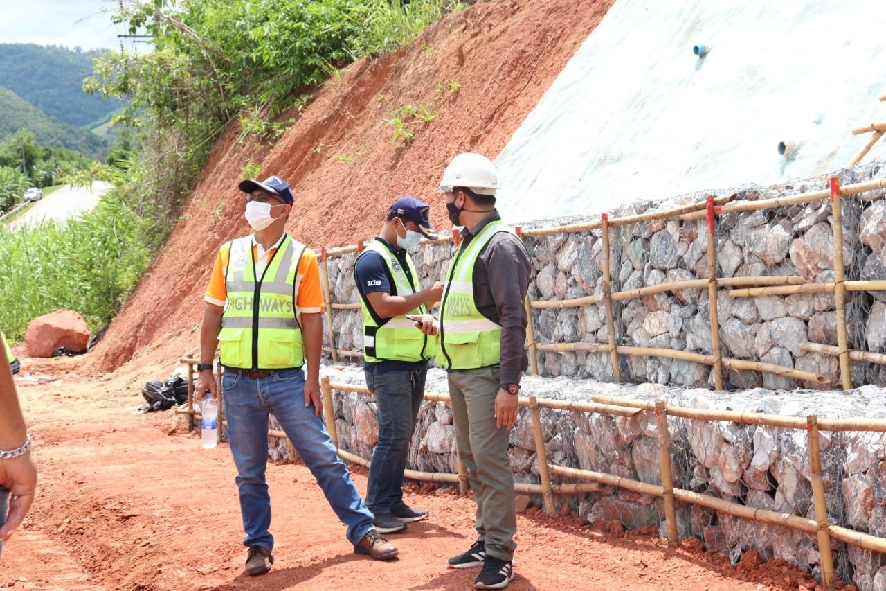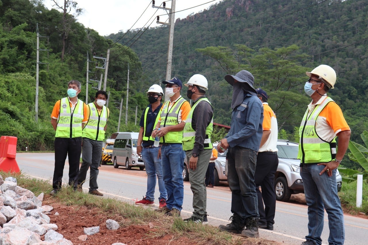 (ฝ่ายปฏิบัติการ) นายพัฒนา เพชรสุริยา รองผู้อำนวยการแขวงฯ (ฝ่ายวิศวกรรม) และ หัวหน้าหมวดทางหลวงในสังกัดฯ ลงพื้นที่