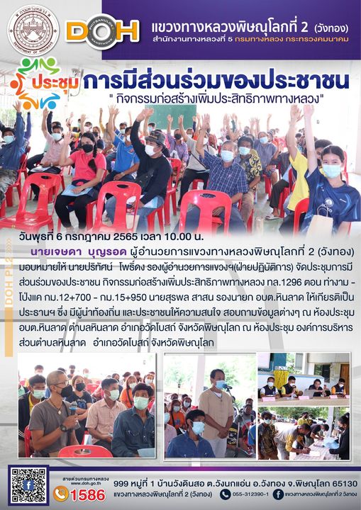 ข้อมูลข่าว : จัดประชุมการมีส่วนร่วมของประชาชน กิจกรรมก่อสร้างเพิ่มประสิทธิภาพทางหลวง ทล.1296 ตอน ท่างาม - โป่งแค
