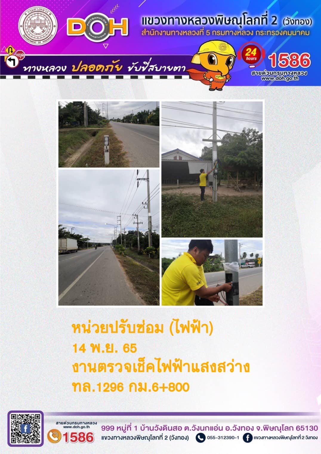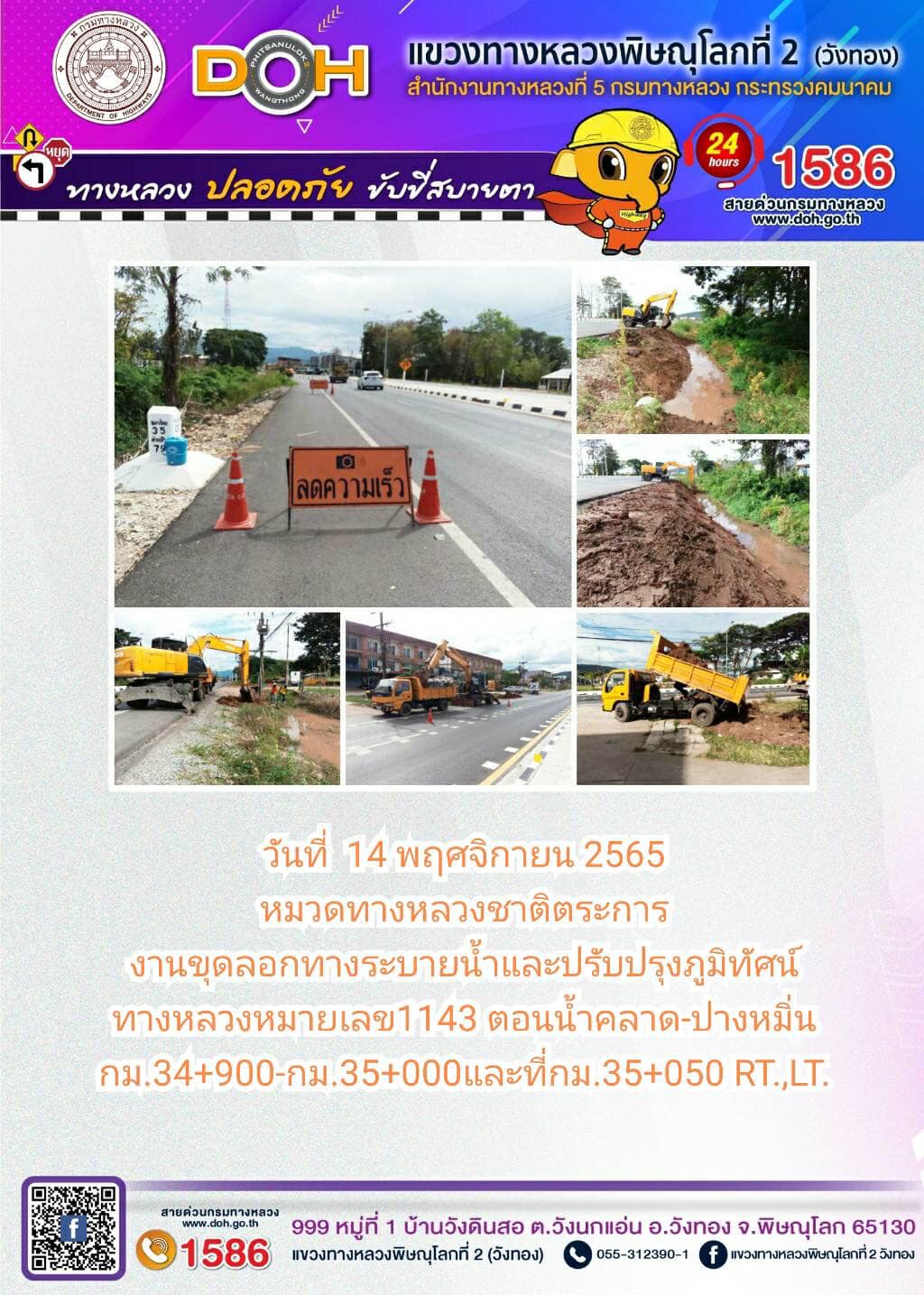 ปฏิบัติงานเพื่ออำนวยความสะดวก และความปลอดภัยของผู้ใช้เส้นทาง ประจำ วันจันทร์ที่ 14 พฤศจิกายน 2565