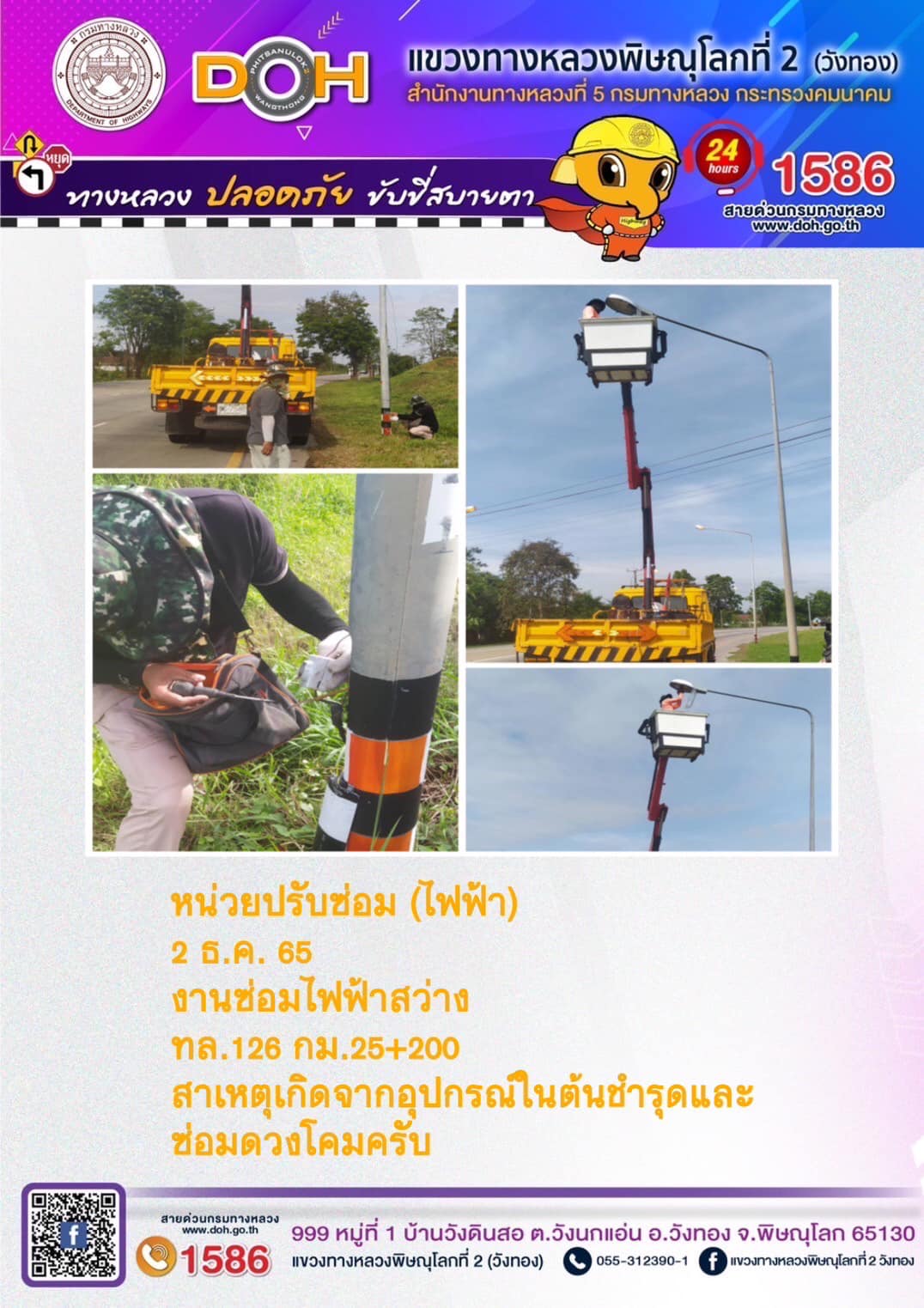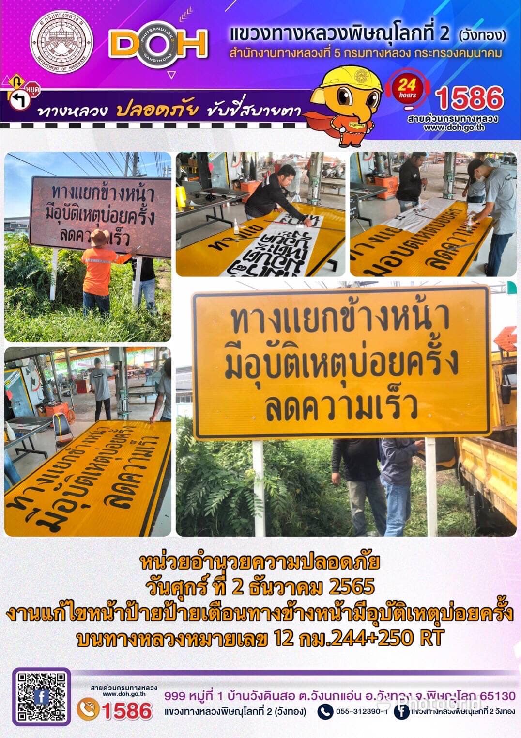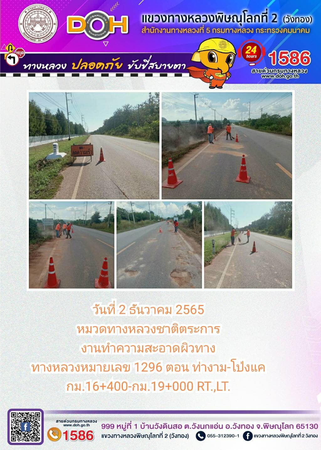 การปฏิบัติงานของ หมวดทางหลวง และ หน่วยงานในสังกัด เพื่ออำนวยความสะดวก และปลอดภัยให้กับประชาชนผู้ใช้เส้นทาง ประจำ วันศุกร์ที่ 2 ธันวาคม 2565