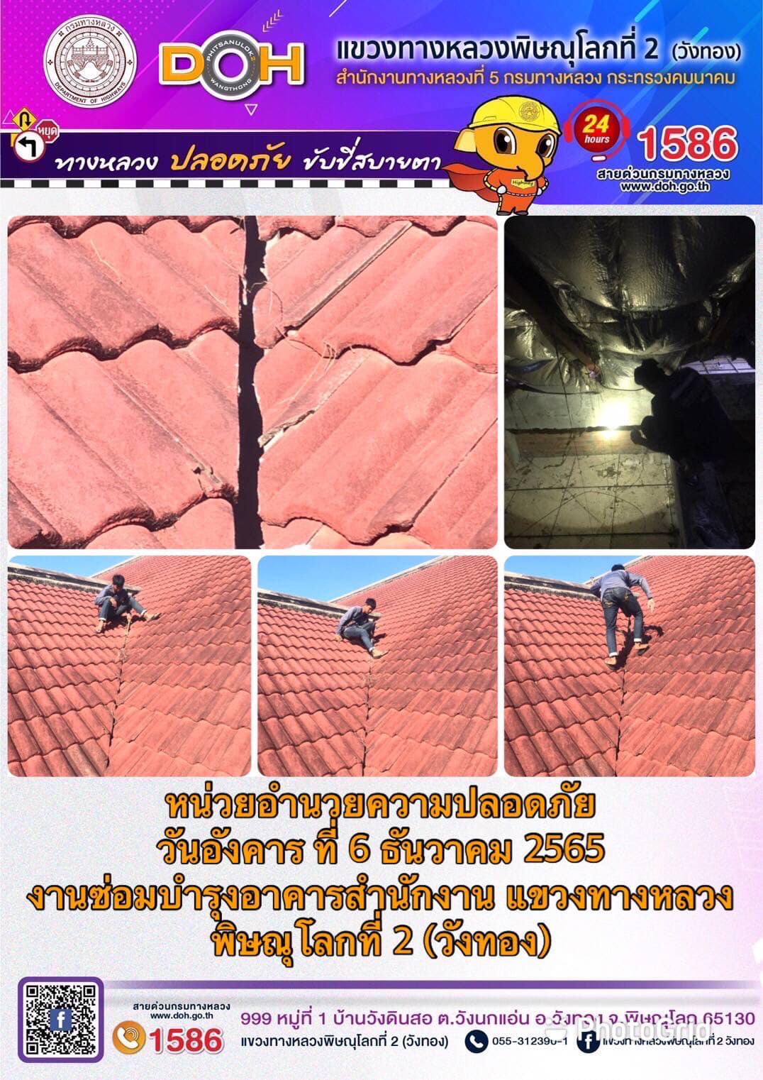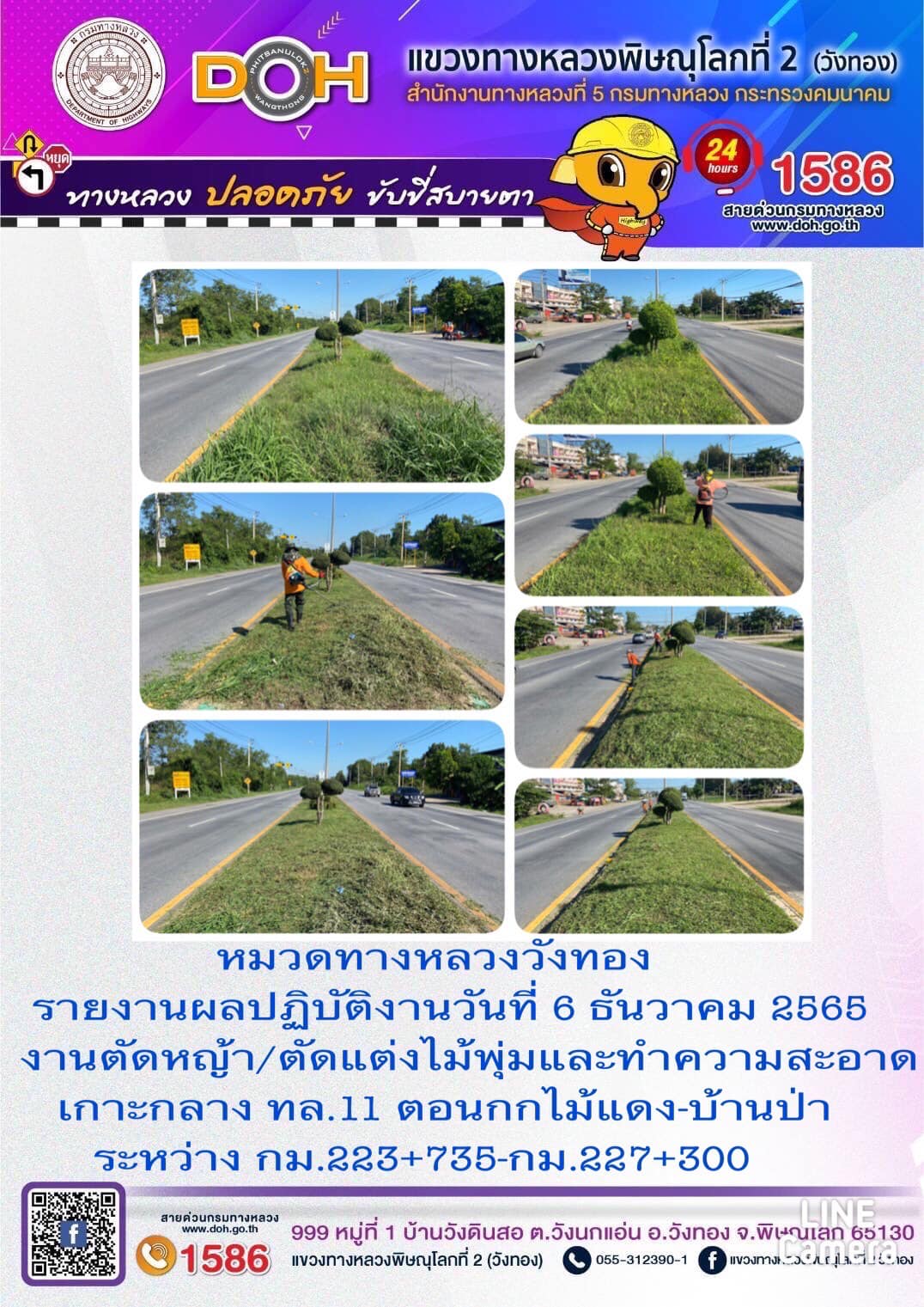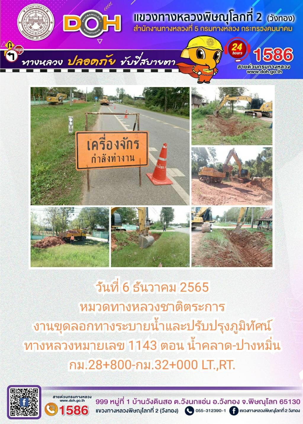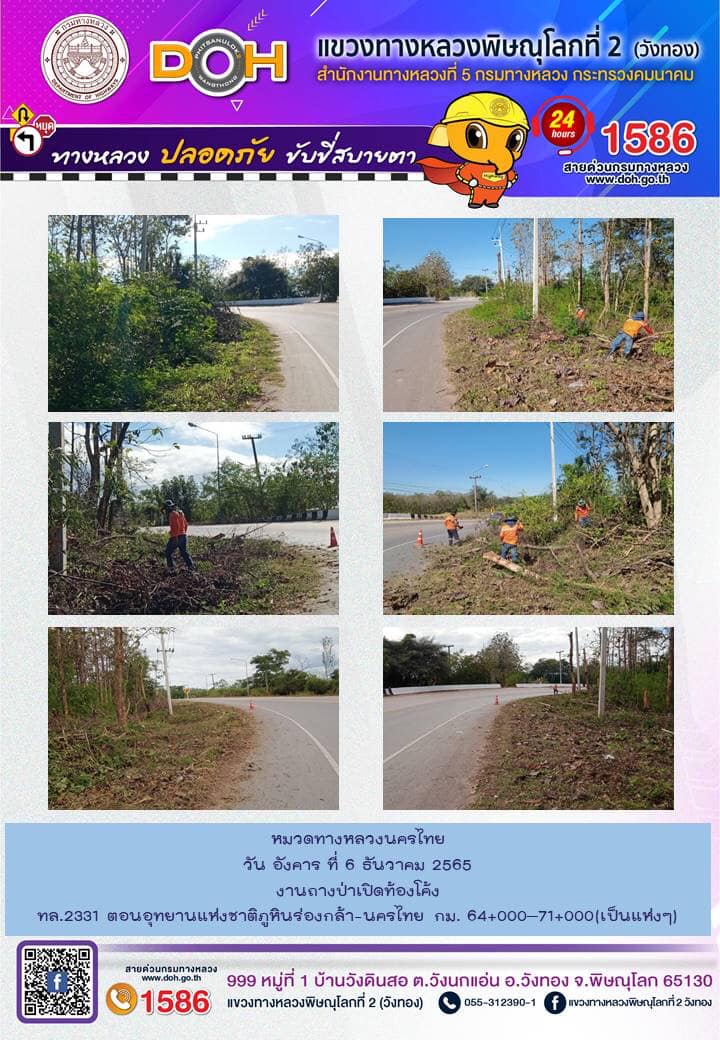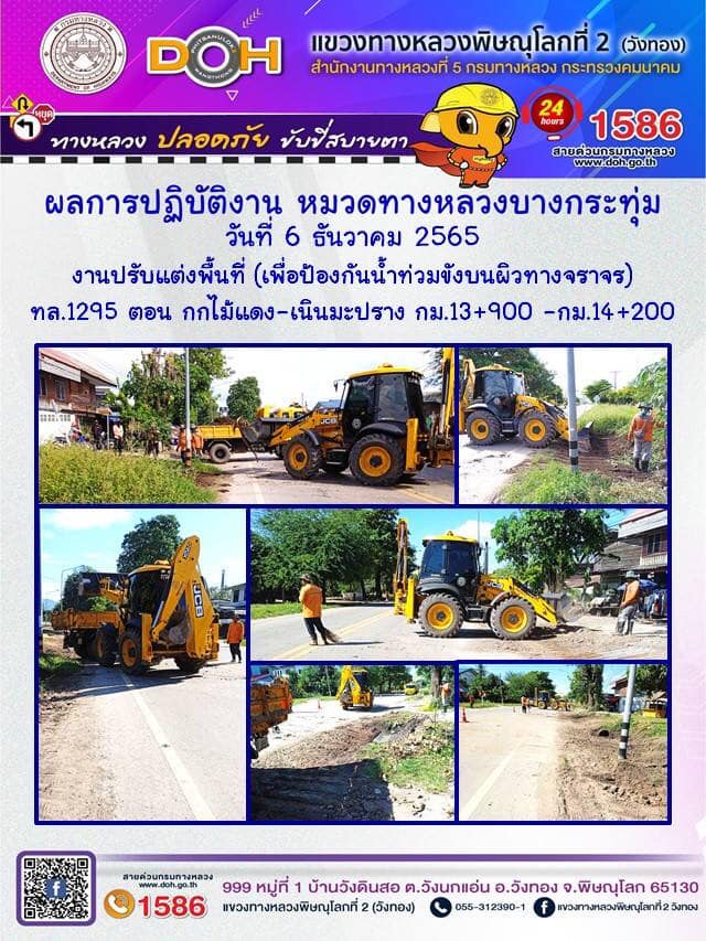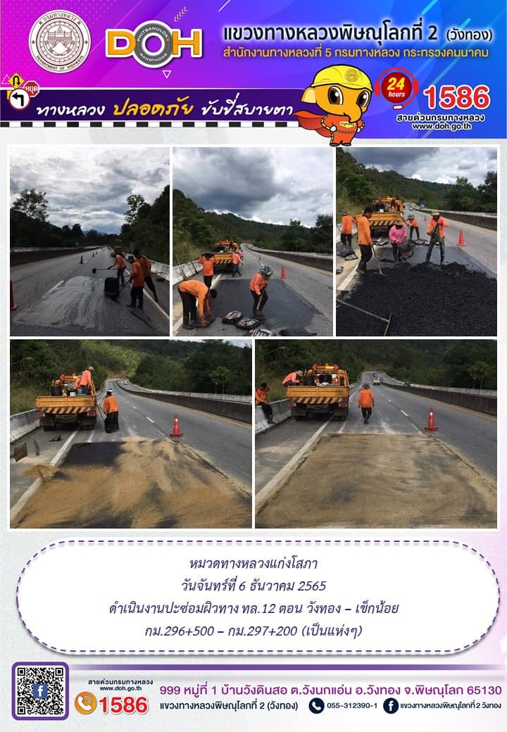 การปฏิบัติงานของ หมวดทางหลวง และ หน่วยงานในสังกัด เพื่ออำนวยความสะดวก และปลอดภัยให้กับประชาชนผู้ใช้เส้นทาง ประจำ วันอังคารที่ 6 ธันวาคม 2565