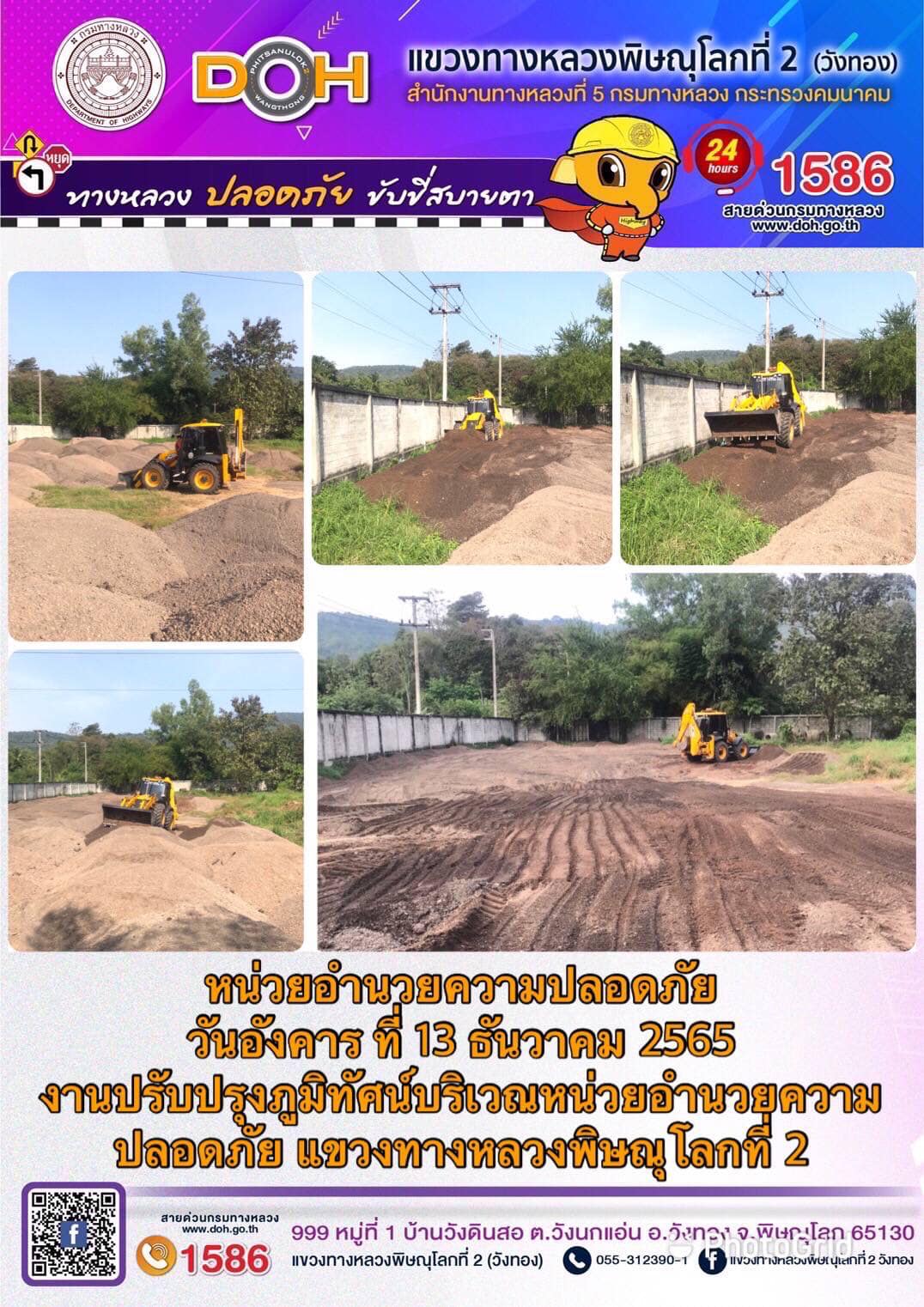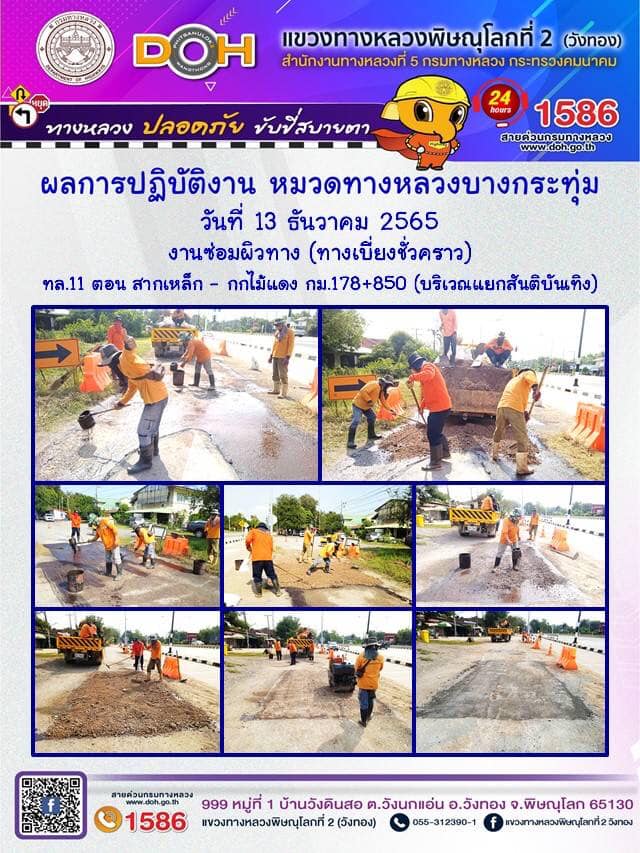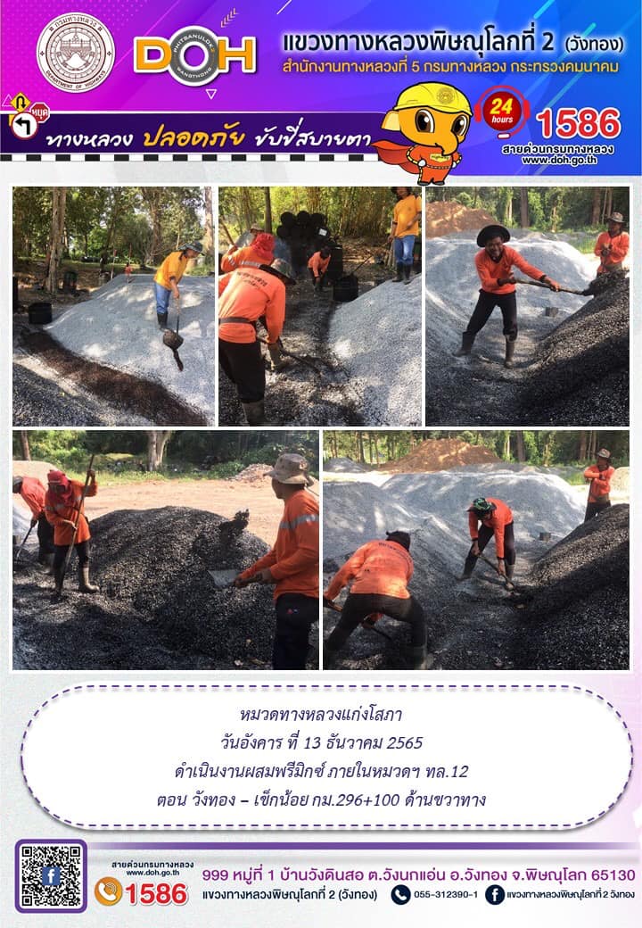 การปฏิบัติงานของ หมวดทางหลวง และ หน่วยงานในสังกัด เพื่ออำนวยความสะดวก และปลอดภัยให้กับประชาชนผู้ใช้เส้นทาง ประจำ วันอังคารที่ 13 ธันวาคม 2565