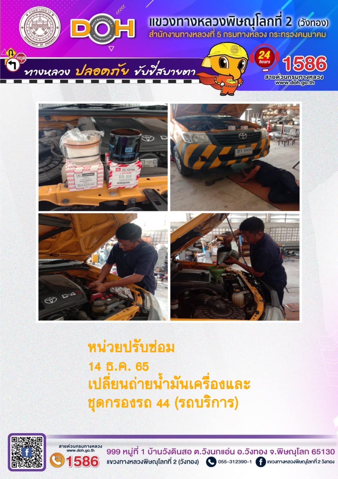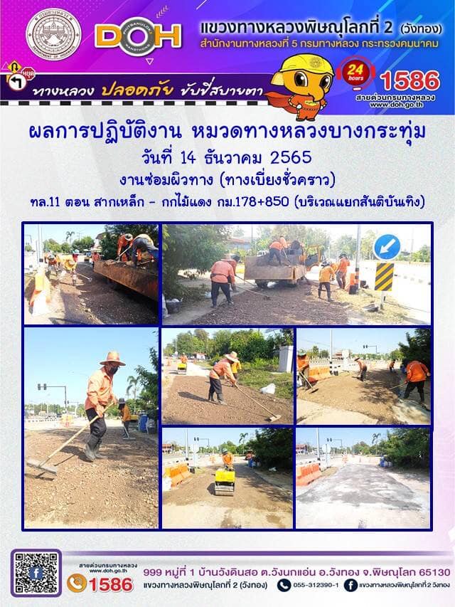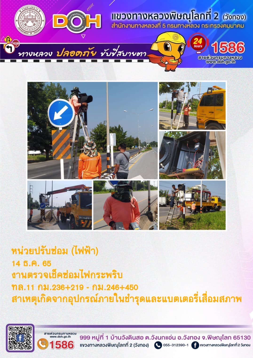 การปฏิบัติงานของ หมวดทางหลวง และ หน่วยงานในสังกัด เพื่ออำนวยความสะดวก และปลอดภัยให้กับประชาชนผู้ใช้เส้นทาง ประจำ วันพุธที่ 14 ธันวาคม 2565