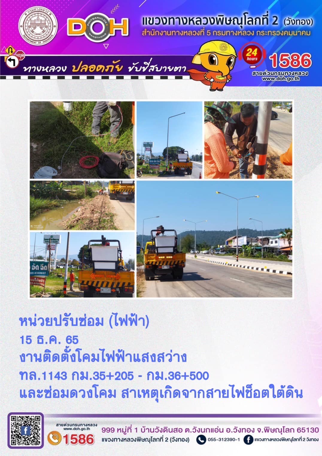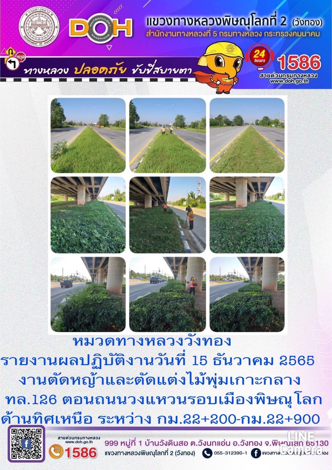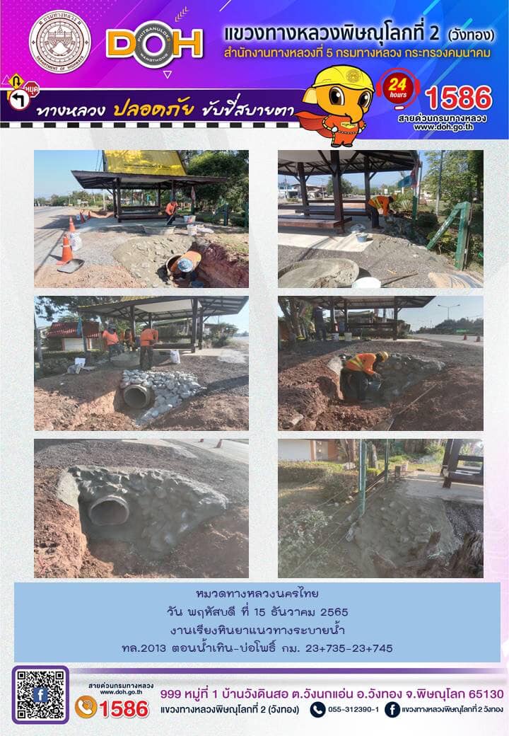 การปฏิบัติงานของ หมวดทางหลวง และ หน่วยงานในสังกัด เพื่ออำนวยความสะดวก และปลอดภัยให้กับประชาชนผู้ใช้เส้นทาง ประจำ วันพฤหัสบดีที่ 15 ธันวาคม 2565