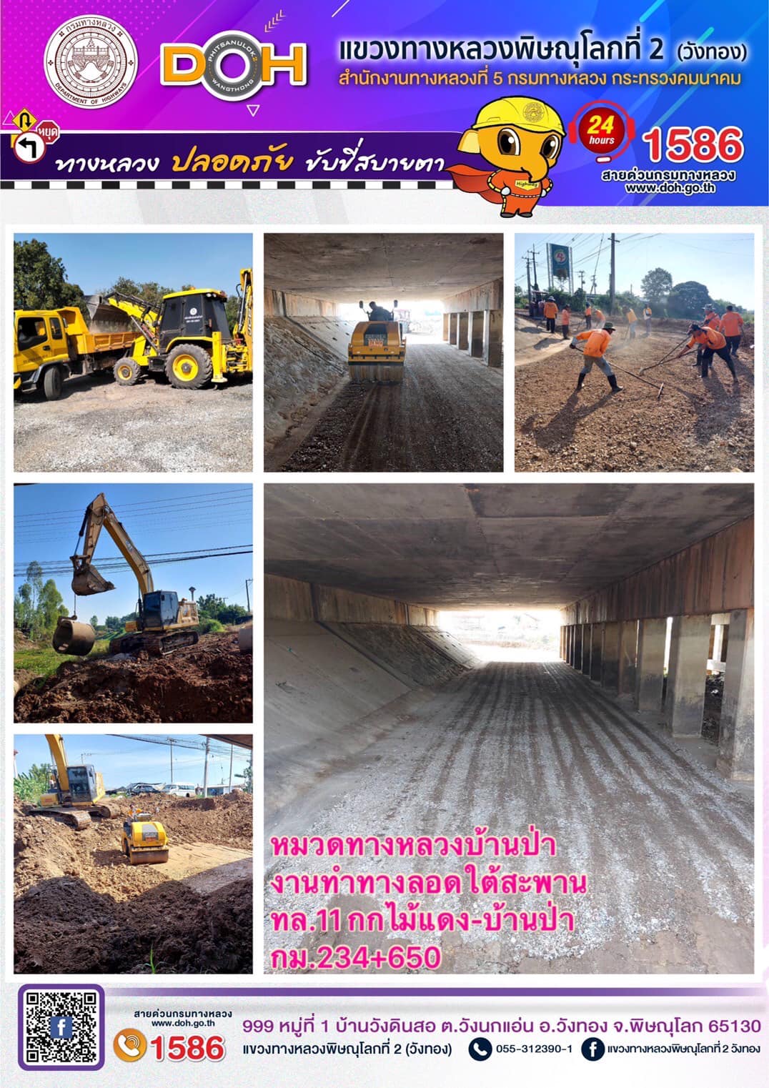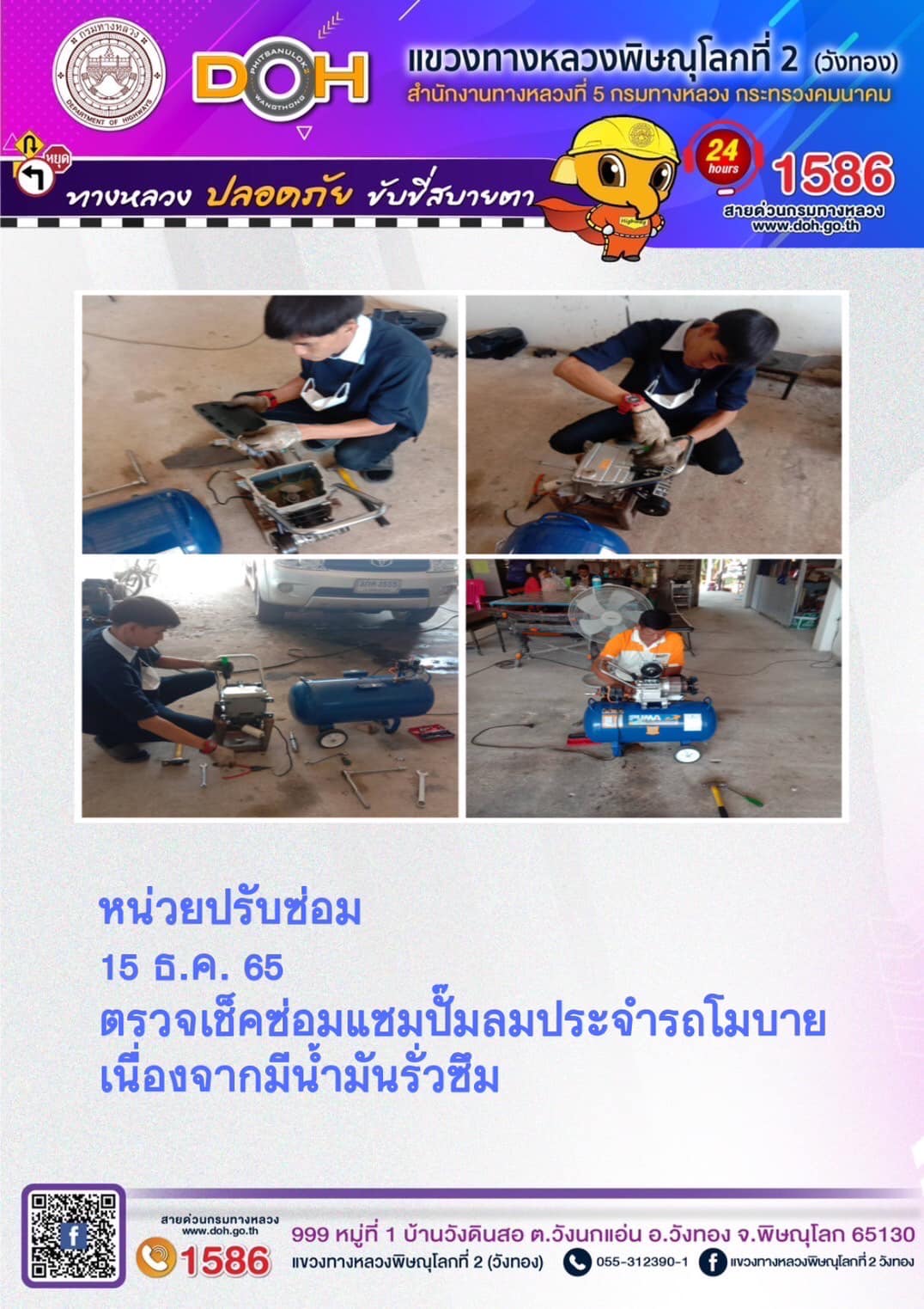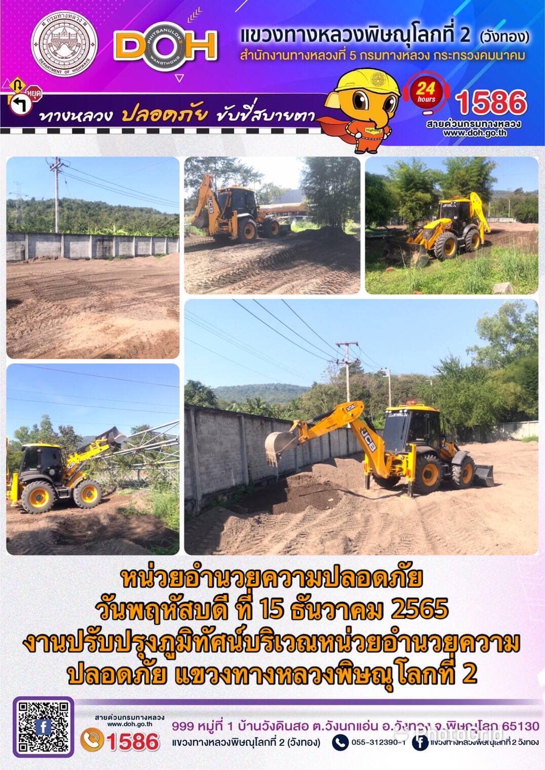 การปฏิบัติงานของ หมวดทางหลวง และ หน่วยงานในสังกัด เพื่ออำนวยความสะดวก และปลอดภัยให้กับประชาชนผู้ใช้เส้นทาง ประจำ วันพฤหัสบดีที่ 15 ธันวาคม 2565