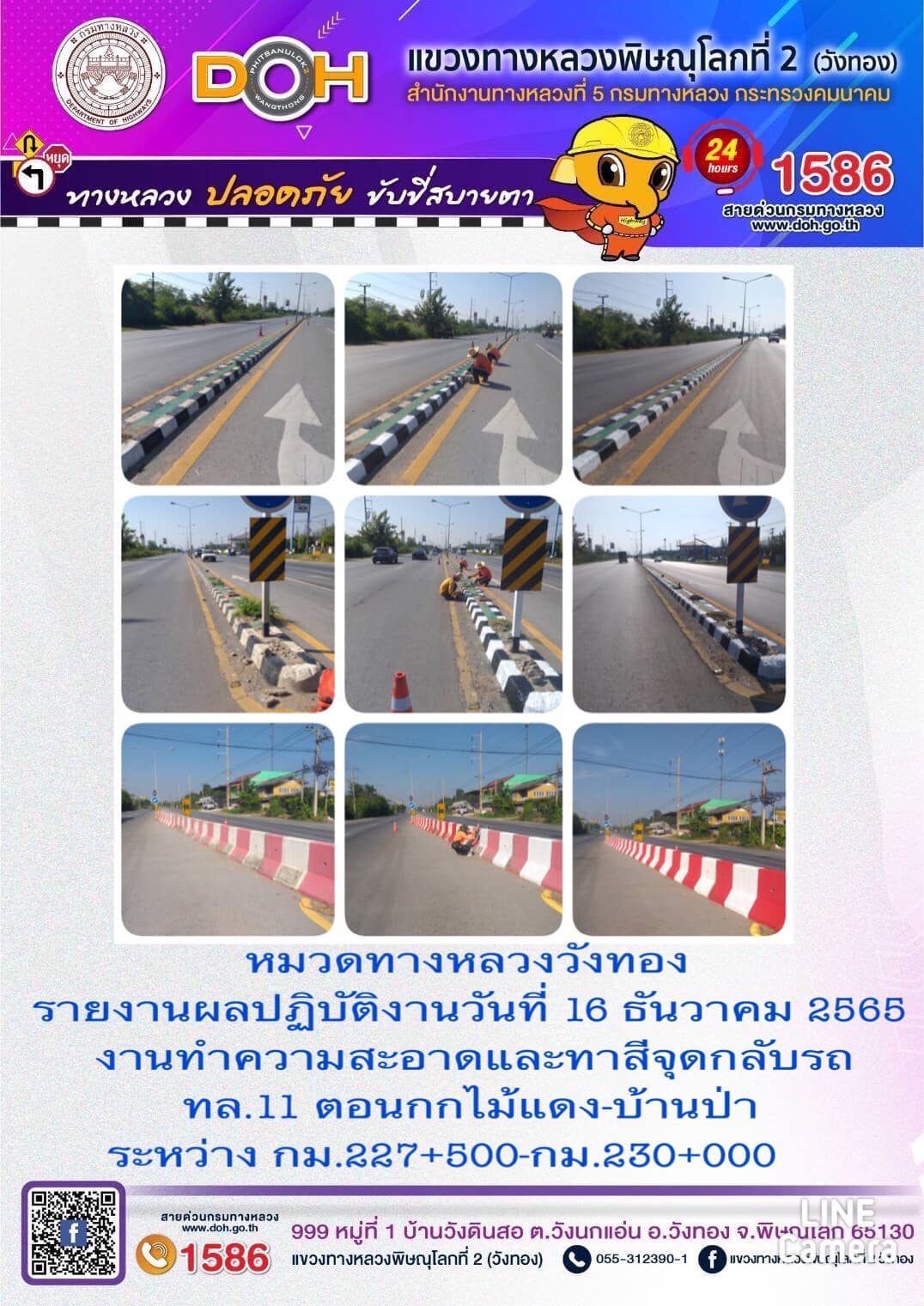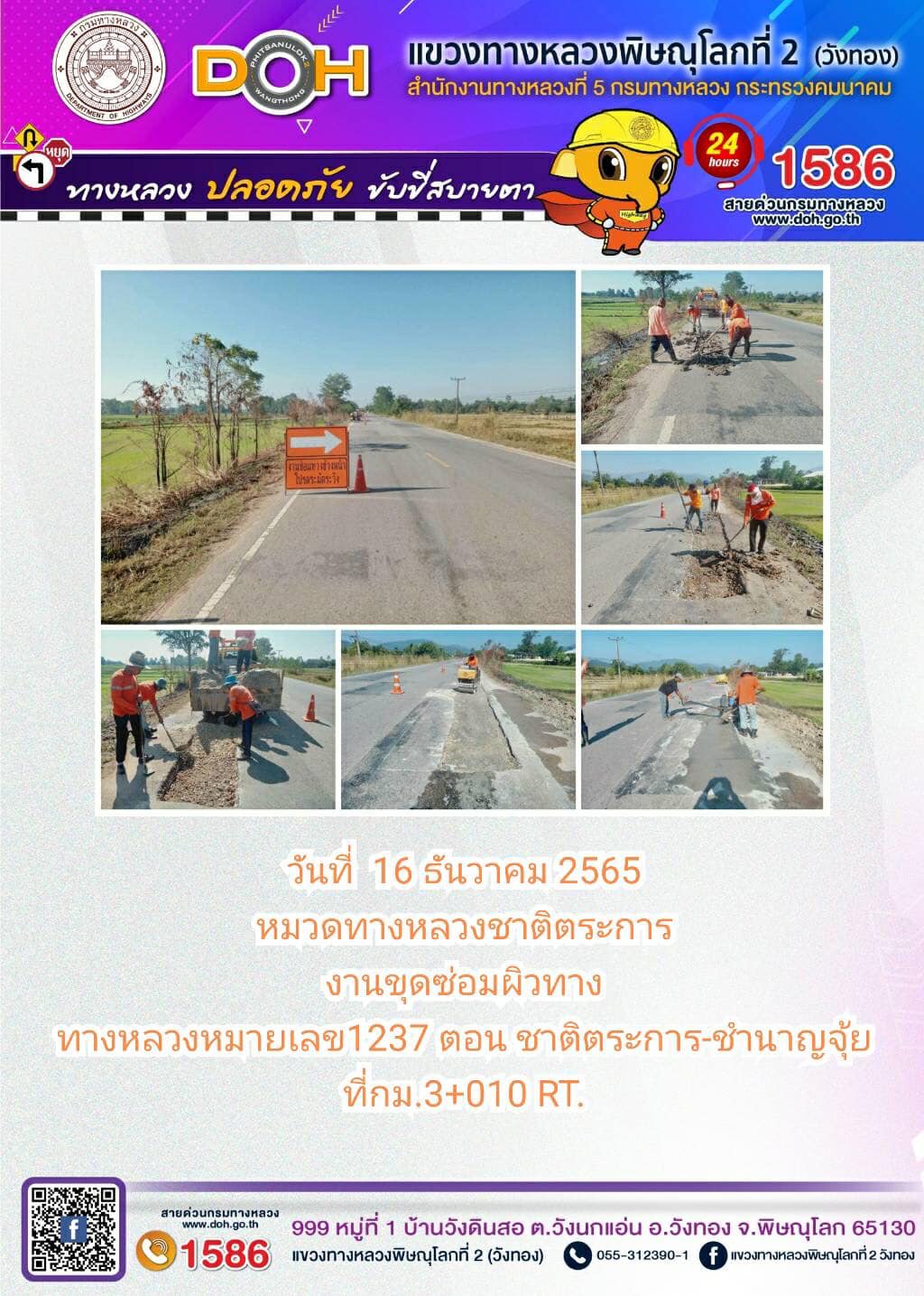 การปฏิบัติงานของ หมวดทางหลวง และ หน่วยงานในสังกัด เพื่ออำนวยความสะดวก และปลอดภัยให้กับประชาชนผู้ใช้เส้นทาง ประจำ วันศุกร์ที่ 16 ธันวาคม 2565