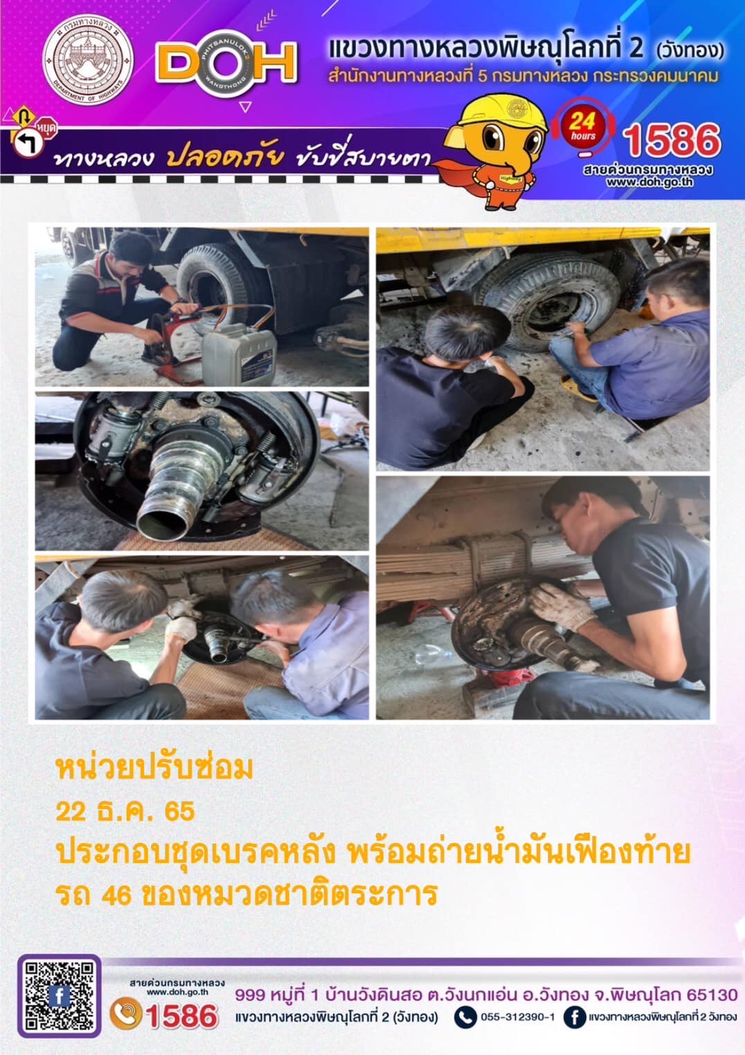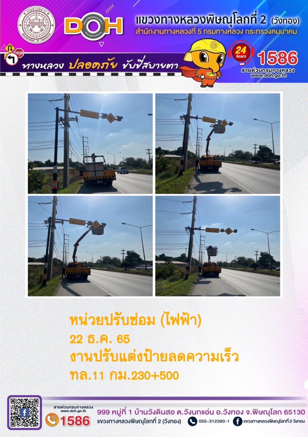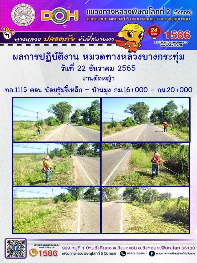 การปฏิบัติงานของ หมวดทางหลวง และ หน่วยงานในสังกัด เพื่ออำนวยความสะดวก และปลอดภัยให้กับประชาชนผู้ใช้เส้นทาง ประจำ วันพฤหัสบดีที่ 22 ธันวาคม 2565